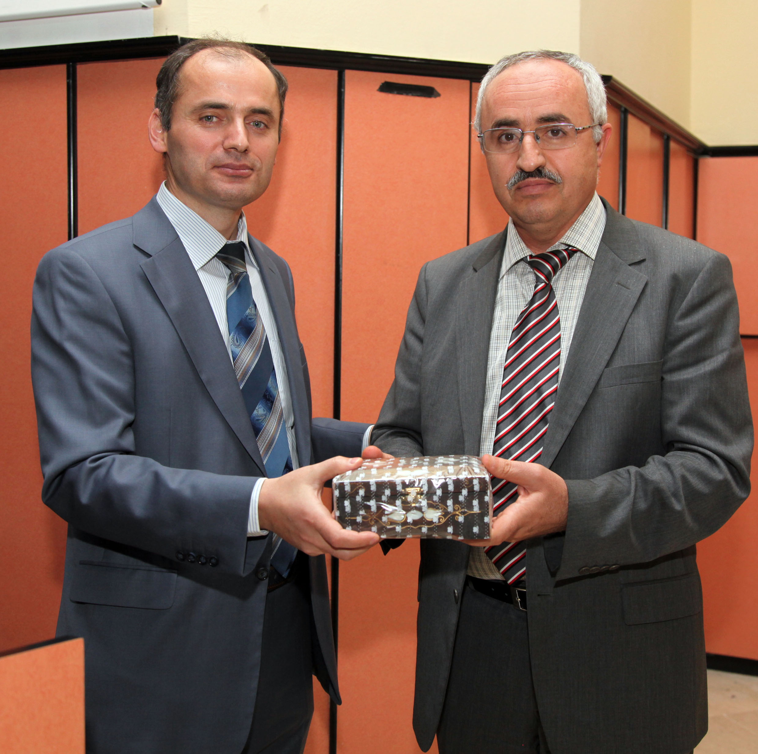 Konferansın sonunda GAÜN İlahiyat Fakülte Dekanı Prof. Dr. Ali Akpınar, Sütçü İmam Üniversitesi İlahiyat Fakültesi Öğretim Üyesi Yrd. Doç. Dr. Halil Çil’e hediye takdim etti.