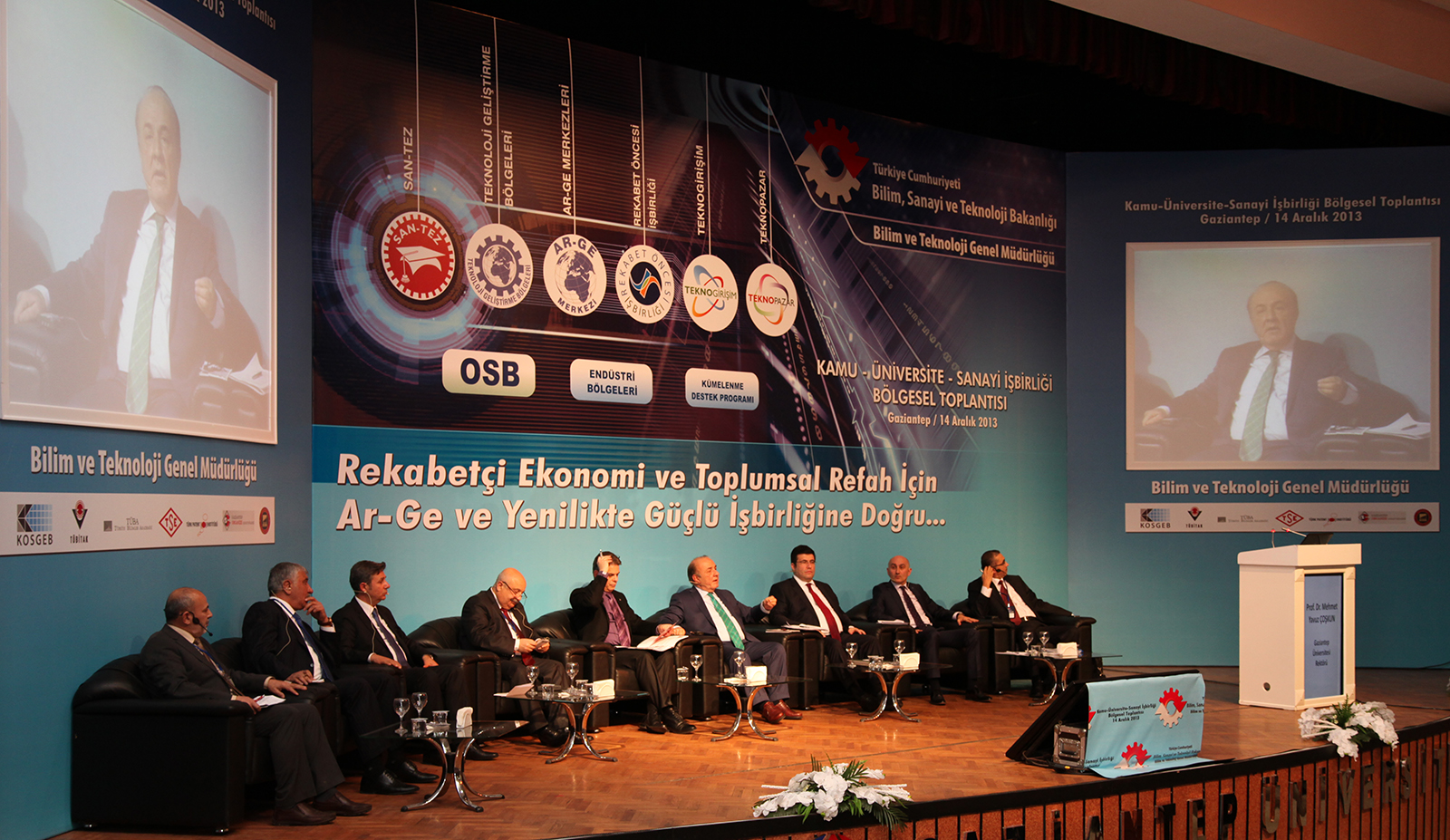 Bilim Sanayi Teknoloji Bakanlığı Müsteşar Danışmanı Prof.Dr. Ulvi Şeker’in moderatörlüğünde düzenlenen “2023’e 10 Kala, Ar-Ge ve Yenilikte Gaziantep, Adıyaman, Kilis” konulu panelin ilk konuşmasını yapan Gaziantep Üniversitesi Rektörü Prof. Dr. Yavuz Coşkun, Gaziantep’in Türkiye’yi taşıyan, kemik bir ekonomik yapısı olan kentlerin başında geldiğini vurguladı. Gaziantep’in 173 ülkeye ihracat yapmasına karşın, Türkiye gibi ileri teknoloji ürünlerinin üretiminde alt sıralarda yer aldığını vurgulayarak şunları söyledi: “Avrupa’da üniversitelerin binlerce şirkete ortaklıklarını görüyoruz. Biz de o seviyeye gelebilmek için ileri teknoloji gerektiren inovatif ürünler ortaya çıkarmamız gerekiyor. Eğer akademinin bilgisini ürünün içine gömemezseniz, dünyanın gerisinde kalırsınız. Biz üniversite bazında bunları yapmaya çalışmışız. Hükümet bunu desteklemek için her türlü desteği veriyor. Benim de katıldığım toplantılarda Sayın Başbakan bu konuda her türlü opsiyona açık olunduğunu defalarca söyledi. Gaziantep Üniversitesi olarak biz kabuğumuzu kırdık. GAÜN ile sanayinin işbirliği noktasında aramızdaki cam duvarı, çay içmekle başlayarak kırdık. Ama bugüne kadar bu yapılmadı? Niye üniversite- sanayi iş birliğinin altı doldurulamadı? Benim hocam, “Bende bilgi var. İsterse sanayici gelir benden bilgi alır, vaktim müsaitse oturur konuşuruz” diyor. Sanayiciye bakıyorsunuz, ‘Benim param var. Üniversiteye mi muhtacım? Paramı verir yurt dışından alırım’ diyor. Bir gurur dansı yapılıyor. Oysa ikisinin de işine gelecek. Türkiye’de kaynak sıkıntısı yok. Başta Bilim Sanayi Teknoloji Bakanlığı başta olmak üzere çeşitli kuruluşlar kaynak aktarıyor araştırmalara. Teknoloji Transfer Ofisimiz aralıksız çalışıyor. Eminim, bu sene verilecek desteklerle şaha kalkacak. Biz öğrencilerimize naylon staj yaptırmıyoruz. İntörnlük ile sanayicinin istediği elemanı yetiştiriyoruz. İntörnlük yapanların yüzde 80’i tezkere bıraktı. Bu yönüyle Gaziantep Üniversitesi Türkiye’ye örnek oldu. Kamu artık uyandı. Akademinin, sanayicinin biraz silkinmesi lazım. Bu arada, Ar-Ge yapan akademisyenlerin de desteklenmesi gerekiyor.”