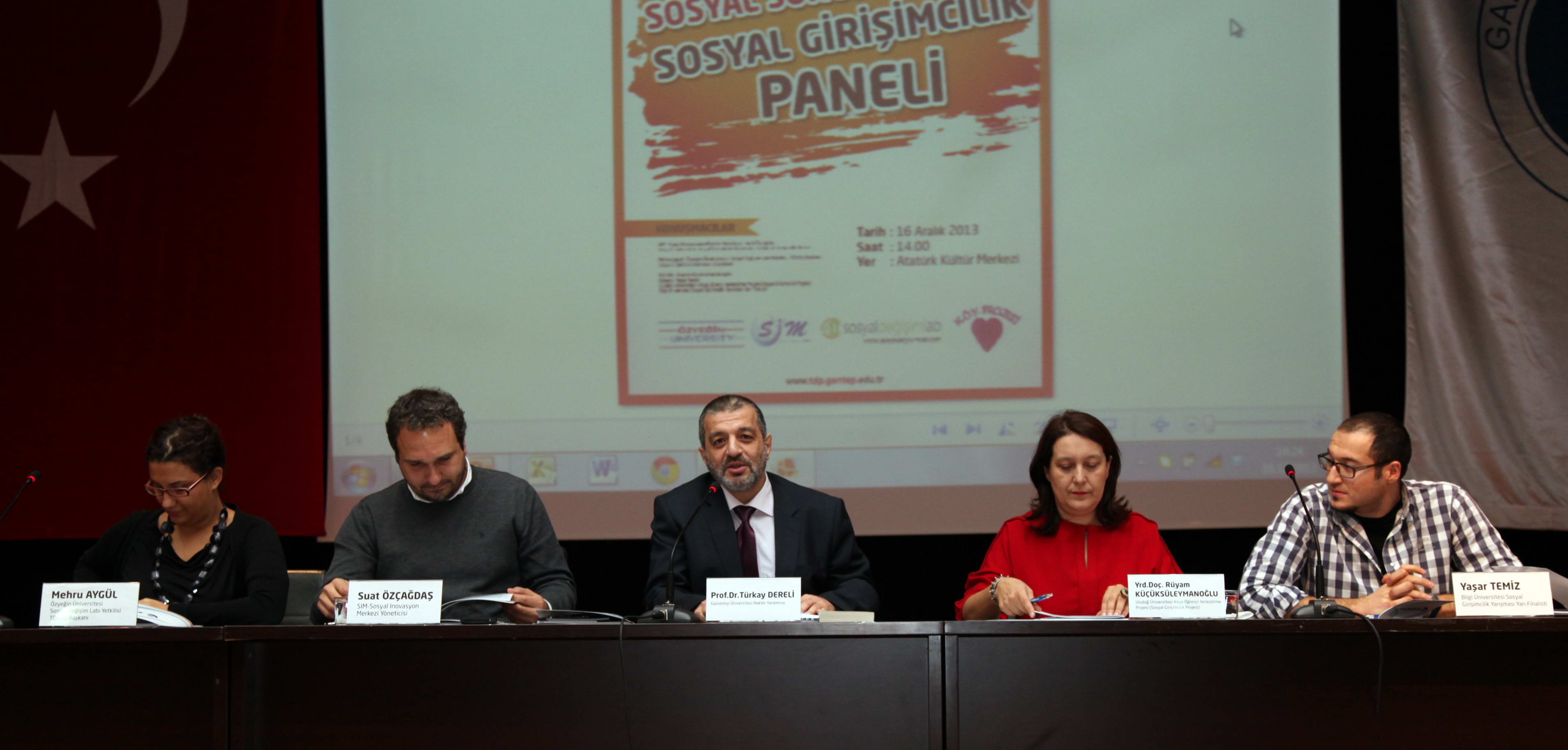 Panelin moderatörlüğünü yapan Gaziantep Üniversitesi (GAÜN) Rektör Yardımcısı Prof Dr. Türkay Dereli, günümüzde girişimciliğin öneminin artık tüm ülkeler tarafından anlaşıldığını belirttiği konuşmasında, “Yenilik yapmak artık tek başına yeterli değil. Yaptığınız yenilikleri ürüne, hizmete ve değere dönüştürmek için ‘girişimcilik’ önemli, ama bunun da mümkünse toplumun ve hayatın tüm kılcallarına değer katması gerekiyor. Sosyal sorumluluk önemli ama onun da ötesine geçerek, ‘sosyal girişimcilik’ fazına geçmek gerekiyor. Yani, sosyal sorumluluk projelerinin kendi kendini sürdürebilen bir iş modelini içermesi bekleniyor. Bunun için öncelikle elbette toplumun toplam sosyal zekâsını geliştirici faaliyetler yapmalıyız. Sosyal girişimcilik, insanın sevdiği şeyi sevdiği işi yapma fırsatı veriyor. Bunun çok önemli bir fırsat olduğunu düşünüyorum günümüz dünyasında” dedi.