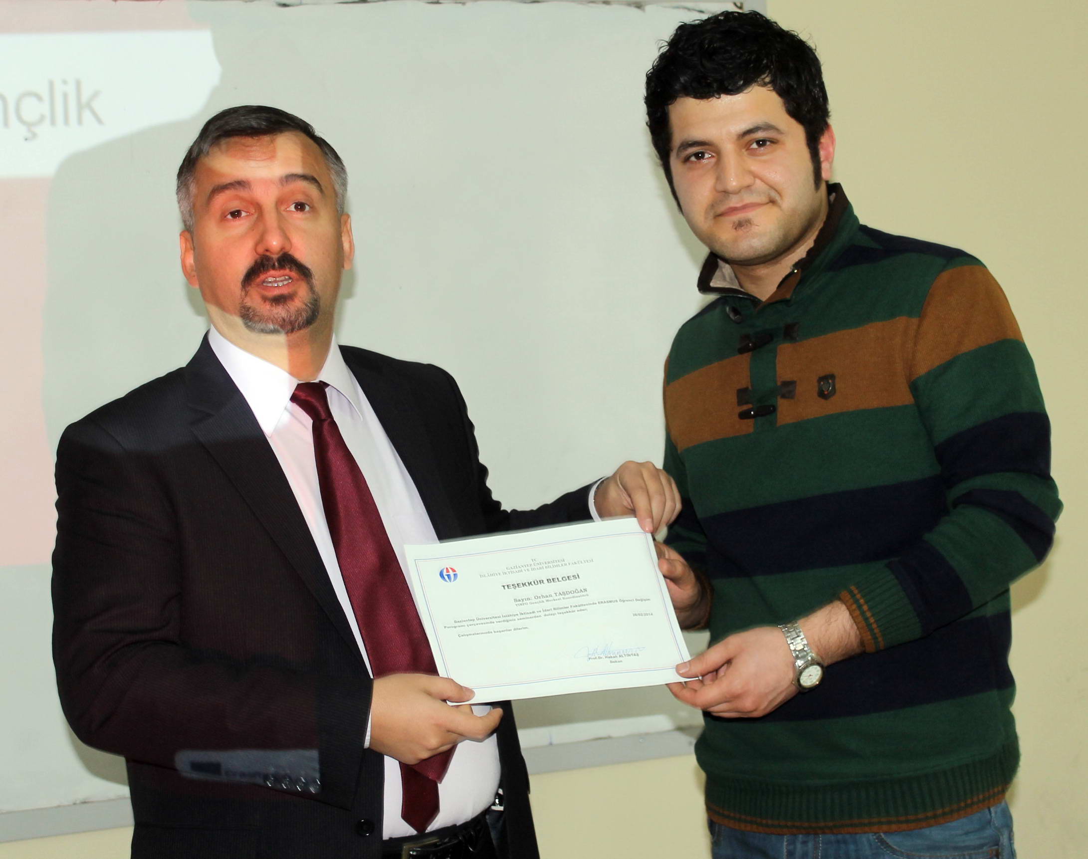 Program sonunda İslahiye İİBF Dekanı Prof. Dr. Hakan Altıntaş, Taşdoğan’a belge takdim ederek sunumundan dolayı teşekkür etti.
