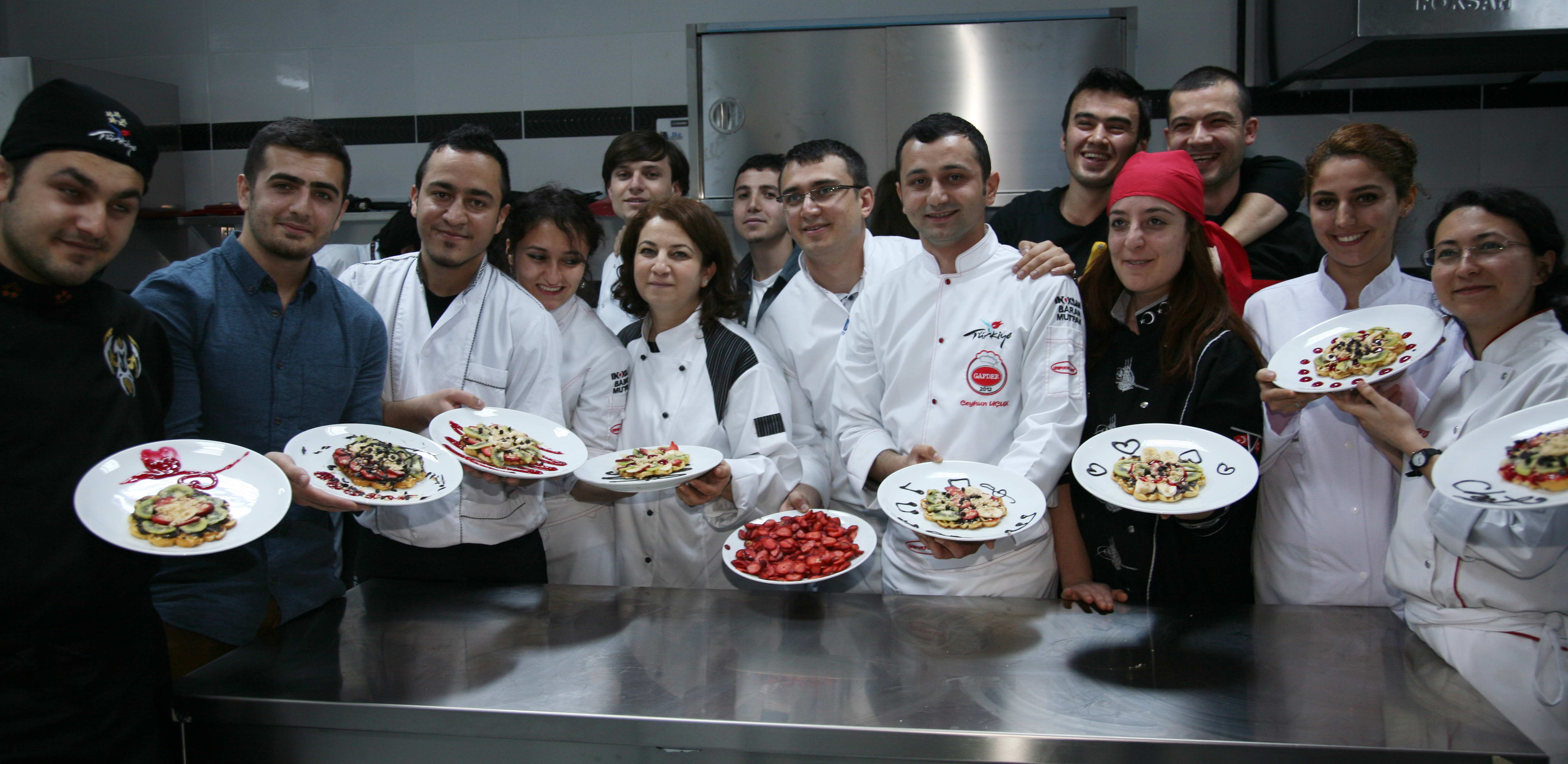 Uluslar arası iki etkinlikte iki ödül kazanan GAÜN Gastronomi ve Mutfak Sanatları Bölümü öğrencileri, Waffle (Hamur Tatlısı) yaparak bölüm çalışanlarına ikram etti, hem de kendileri yedi.