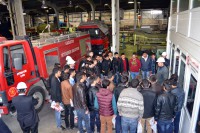 Teknik gezi kapsamında, öğrencilerin araç üstü itfaiye ekipmanları ve montajlarının araçlara nasıl yapıldığı hakkında bilgi verildi.