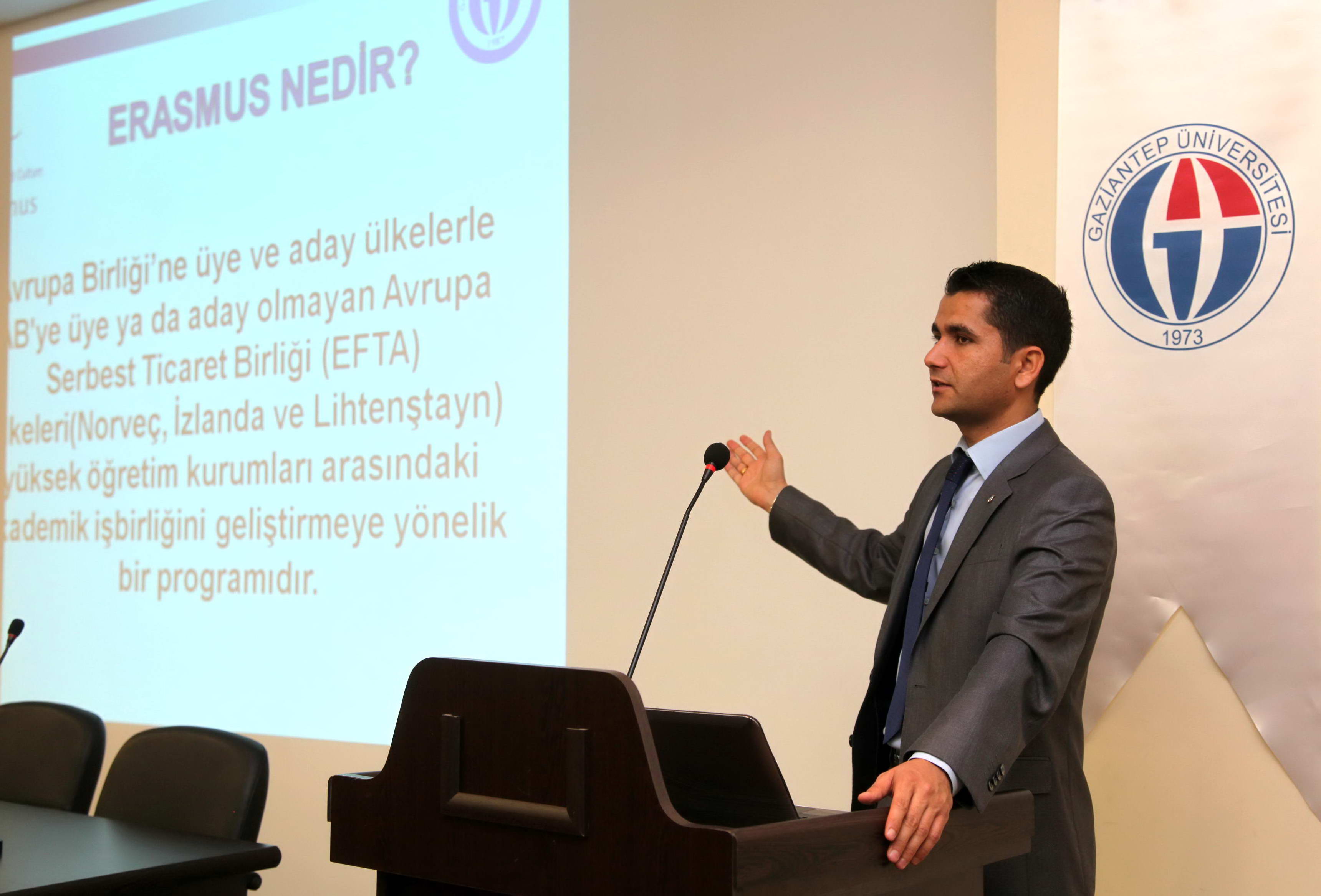 Gaziantep Üniversites (GAÜN) Mühendislik Fakültesi Dekanlığı Konferans Salonunda, Uluslararası İlişkiler Ofisi Erasmus Programı Uzmanı Şeyho Bozkuş ve Ebru Çayırgan Göktekin tarafından “Erasmus Bilgilendirme Toplantısı” düzenlendi. Erasmus’un aynı zamanda kültür değişimini de kapsayan bir program olduğunu belirten Bozkuş, Erasmus Programının, öğrencilerin program ülkelerindeki yüksek öğretim kurumları ile öğrenci değişimini sağlayan bir program olduğunu ifade etti. Bozkuş, “Erasmus öğretim elemanları ve üniversite…