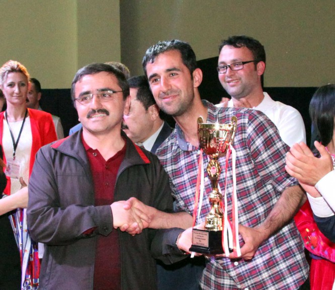 Stilize dalda final müsabakalarında birincilik kürsüsüne çıkan Gaziantep Üniversitesinin birincilik kupa ve madalyasını Türkiye Üniversite Sporları Federasyonu Başkanı Prof. Dr. Kemal Tamer ve Gaziantep Üniversitesi Rektörü Prof. Dr. M. Yavuz Coşkun birlikte verdi.