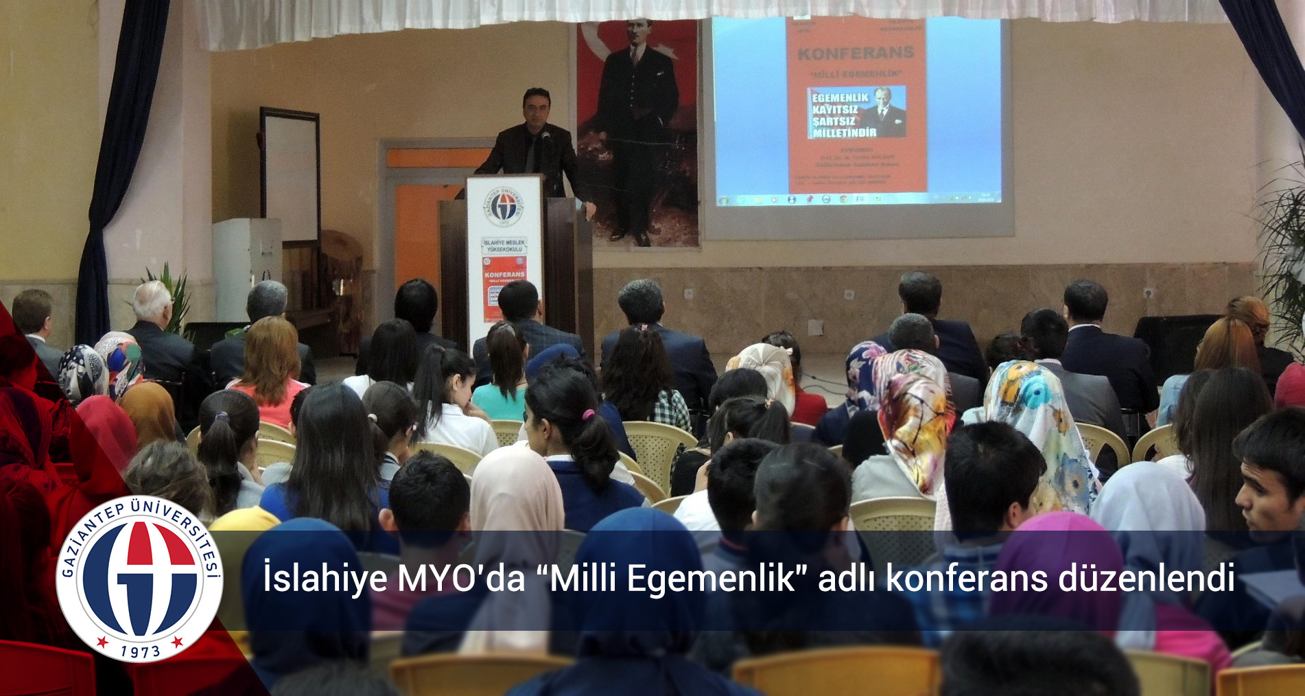 Gaziantep Üniversitesi (GAÜN) İslahiye Meslek Yüksekokulu ile İslahiye Kaymakamlığı işbirliğiyle, GAÜN Hukuk Fakültesi Dekanı Prof. Dr. M. Tevfik Gülsoy’un konuşmacı olarak katıldığı “Milli Egemenlik” adlı konferans düzenlendi.