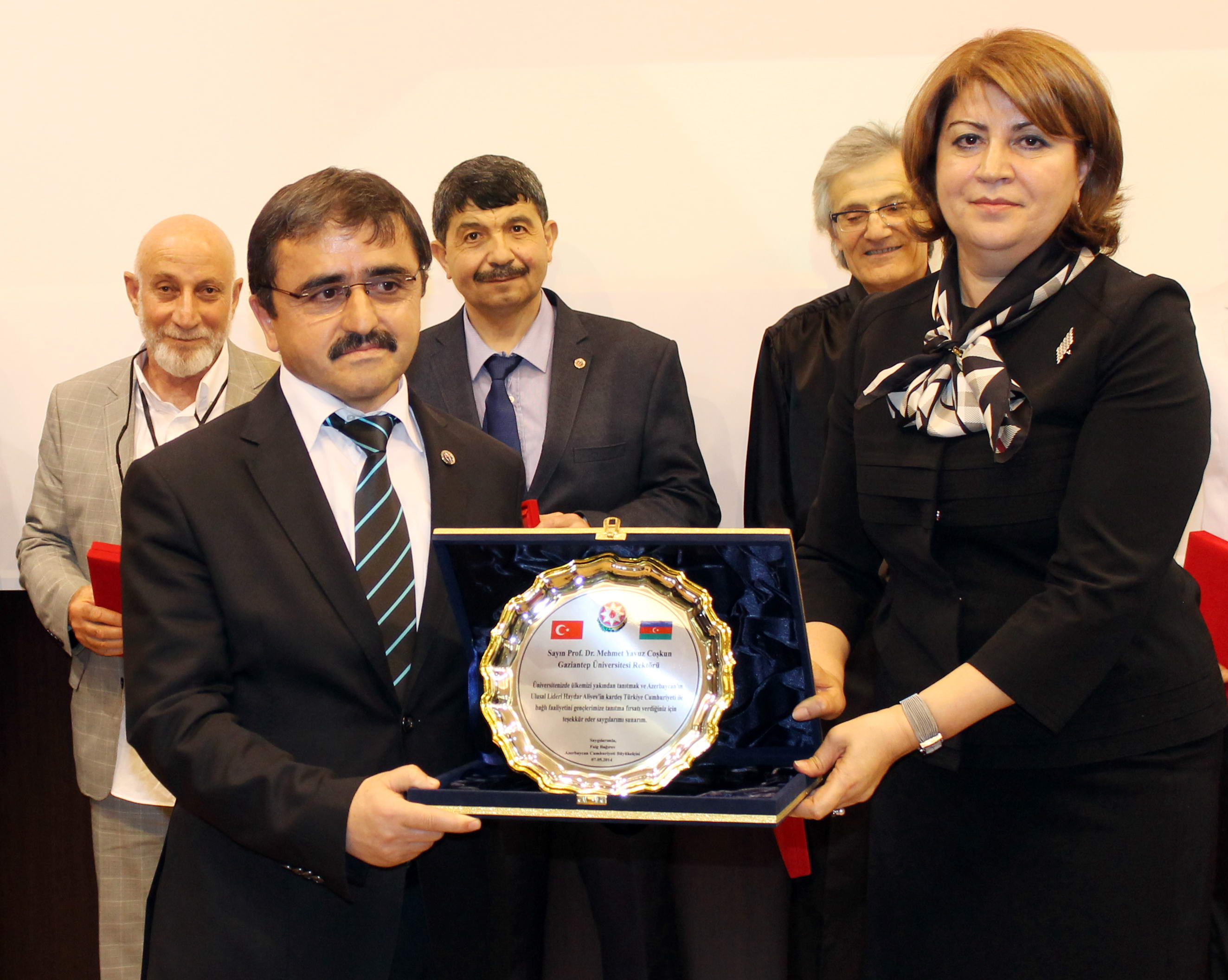 Azerbaycan Ulusal Lideri Haydar Aliyev’in 91. Doğum yılı anısına katkılarından dolayı, Prof. Dr. Cahit Bağcı ve Doç. Dr. Necibe Nesibova tarafından; GAÜN Öğretim Üyesi Ilgar İmamverdiyev, GAÜN Öğretim Üyesi Yrd. Doç. Dr. Mehmet Soğukömeroğulları, Prof. Dr. Babek Gurbanov, Harran Üniversitesi Öğretim Üyesi Atik Sahil, GAÜN Öğretim Üyesi Muhammed Aliyev, Çukurova Üniversitesi Devlet Senfoni Orkestrası Sanatçısı Yrd. Doç. Dr. Ferhad Ağamalızade, Harran Üniversitesi Öğretim Üyesi Doç. Dr. Efgan Salayev’e plaket takdim edildi.