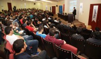 Mühendislik Fakültesi’nde düzenlenen etkinliğin açılış konuşmasını yapan GAÜN Rektörü Prof. Dr. Yavuz Coşkun, üniversite olarak farklı işler yapma, eski köye yeni adet getirme, icat çıkarma çabası içinde olduklarını belirtirken, “Bunun için hep fikri olan beri gelsin dedik. Üniversiteyi sadece sizlere eğitim verdiğimiz bir yüksek lise olarak görmedik. Ama burayı total olarak bir insanın yetişmesi için gerekli iklimin tesis edildiği bir yer olarak addettik” dedi. Eğitim konusunda farklı şeyler yaptıklarını dile getiren Rektör Prof. Dr. Yavuz Coşkun, “Bugün Toplumsal Duyarlılık Projelerini herkes yapıyor. Ama biz bunu zorunlu ders olarak müfredatımıza aldık. Birçok üniversiteye bu konuda örnek olduk. Her yıl en az 300 projeyle çıkıp şehrin kılcallarına kadar inip, güzel şeyler yapıyoruz. Biz, insanla, toplumla temas ederek üretmeye, toplumla iç içe olmaya özen gösteriyoruz. Elbette akıntı içinde kaybolan ama ona yön veren fikirlerin de topluma zerk edildiği bir süreci sizinle yaşamak istiyoruz. Dünyayı değiştiren adamlar böyle bir kişidir, birkaç kişidir. Olmaz demeyin hepiniz yeni bir takım fikirler ortaya koyabilirsiniz. Yani, dünyayı değiştiren insan olabilirsiniz” diye konuştu.