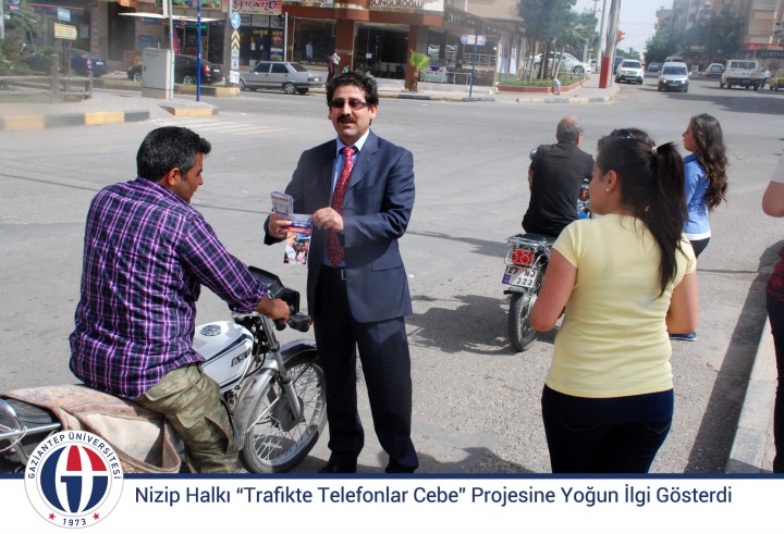 Topluma Duyarlılık Projesi kapsamı içerisinde Nizip Eğitim Fakültesi Öğretim Üyeleri Yrd. Doç. Dr. Ayşegül Derman, Yrd. Doç. Dr. Fahri Dağı ve 60 kişilik öğrenci grubu tarafından Nizip’in çeşitli yerlerinde “Trafikte Telefonlar Cebe Projesi” adı altında faaliyetler gerçekleştirildi.
