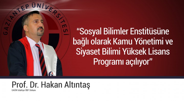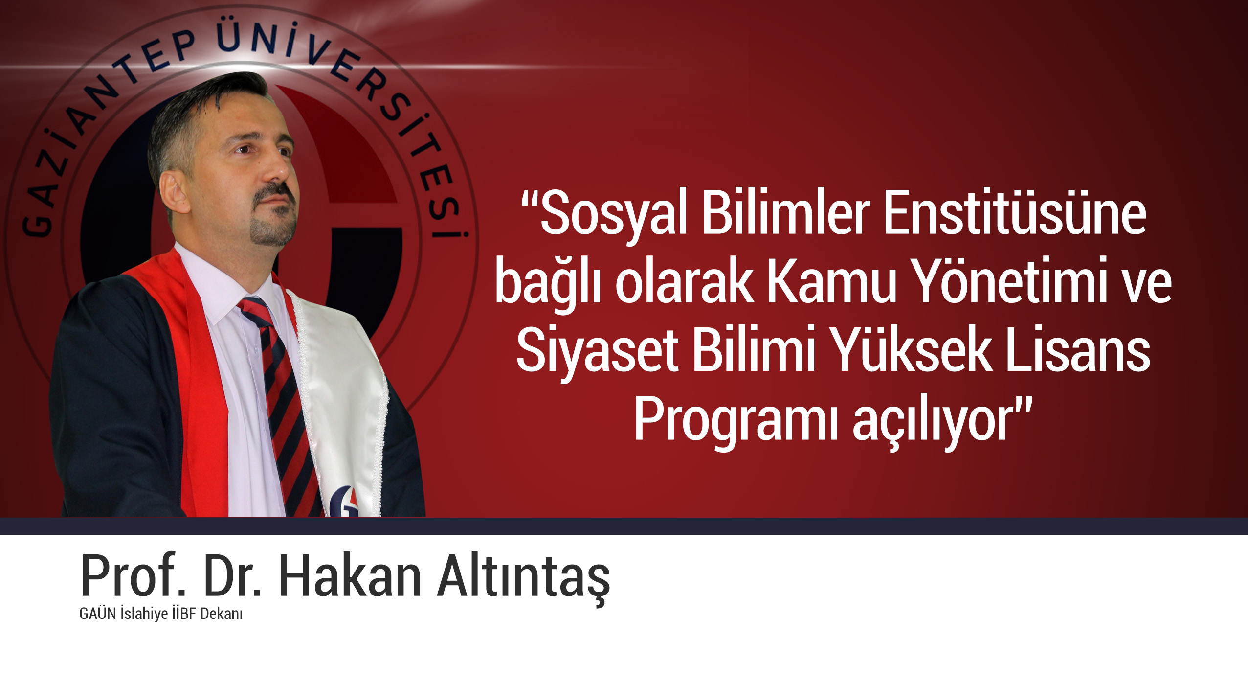 Gaziantep Üniversitesi (GAÜN) İslahiye İktisadi ve İdari Bilimler Fakültesi (İİBF) Sosyal Bilimler Enstitüsüne bağlı olarak Kamu Yönetimi ve Siyaset Bilimi Yüksek Lisans Programı açılıyor.