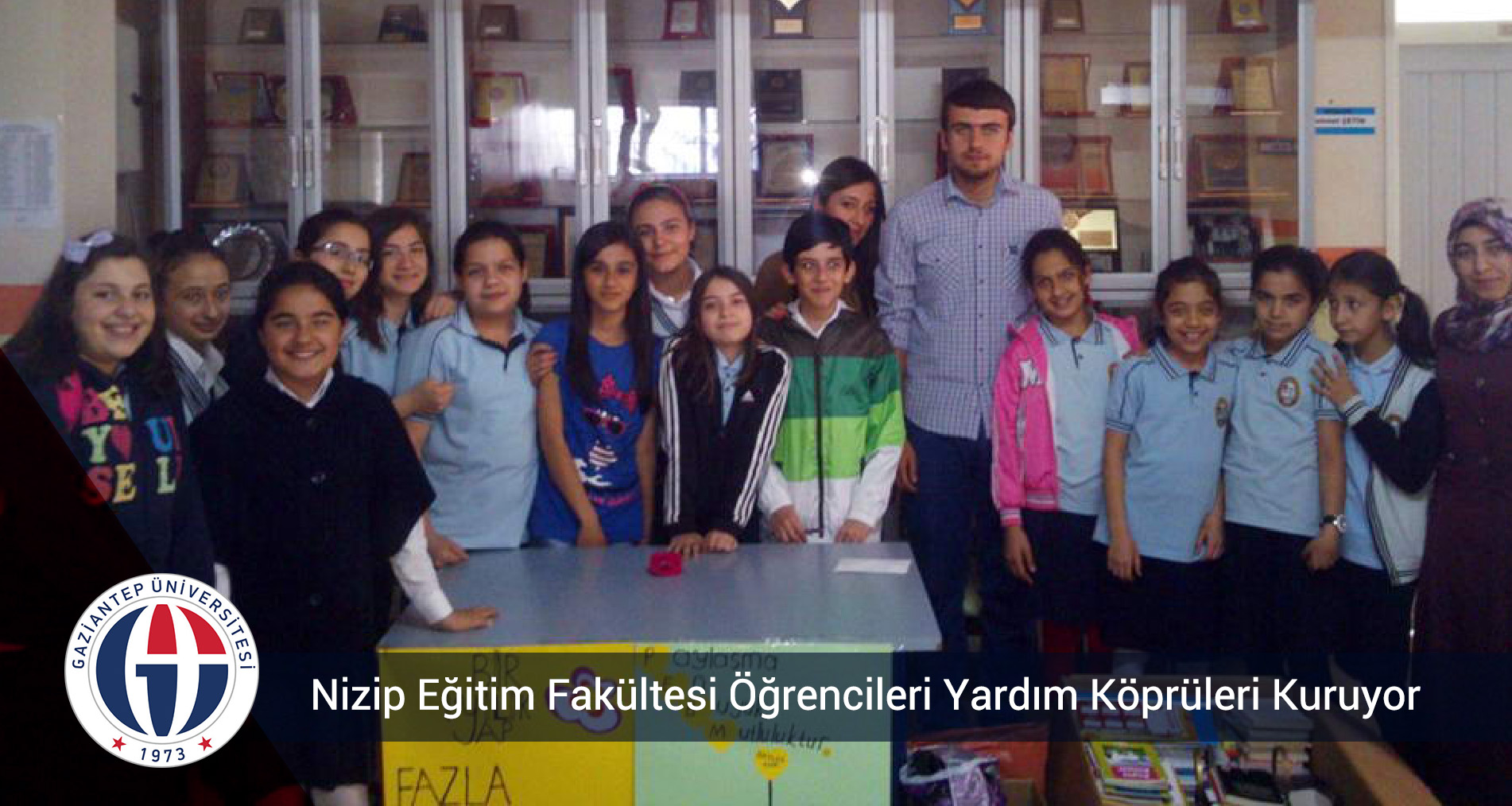Gaziantep Üniversitesi (GAÜN) Nizip Eğitim Fakültesi Sınıf Öğretmenliği öğrencileri tarafından, Topluma Hizmet Uygulamaları Dersi kapsamında, Nizip merkez ilköğretim ve ortaokullarında öğrenim gören öğrencilerden toplanan kırtasiye ve diğer yardımlar köy okullarında öğrenim gören öğrencilere ulaştırıldı. Yrd. Doç. Dr. Fatih Bozbayındır’ın koordinatörlüğünde olan etkinlikte; yardım alan köyde öğrenin gören öğrenciler, şehirde öğrenim gören öğrenci arkadaşlarına ve bu yardımı kendilerine ulaştıran sınıf öğretmenliği…