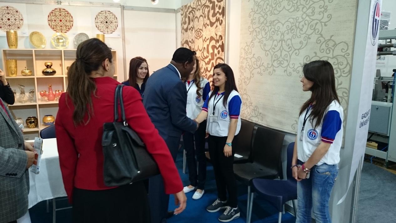 Fuar süresi boyunca farklı ülkelerden ziyaretçi akınına uğrayan Naci Topçuoğlu Meslek Yüksekokulu standı, Güney Afrika Büyükelçisi Vika M.Khumalo da ziyaret ederek, hem yapılan işler hakkında bilgi aldı hem de öğrencilerle sohbet ederek yapmış oldukları tasarımlar için beğenilerini ifade etti.