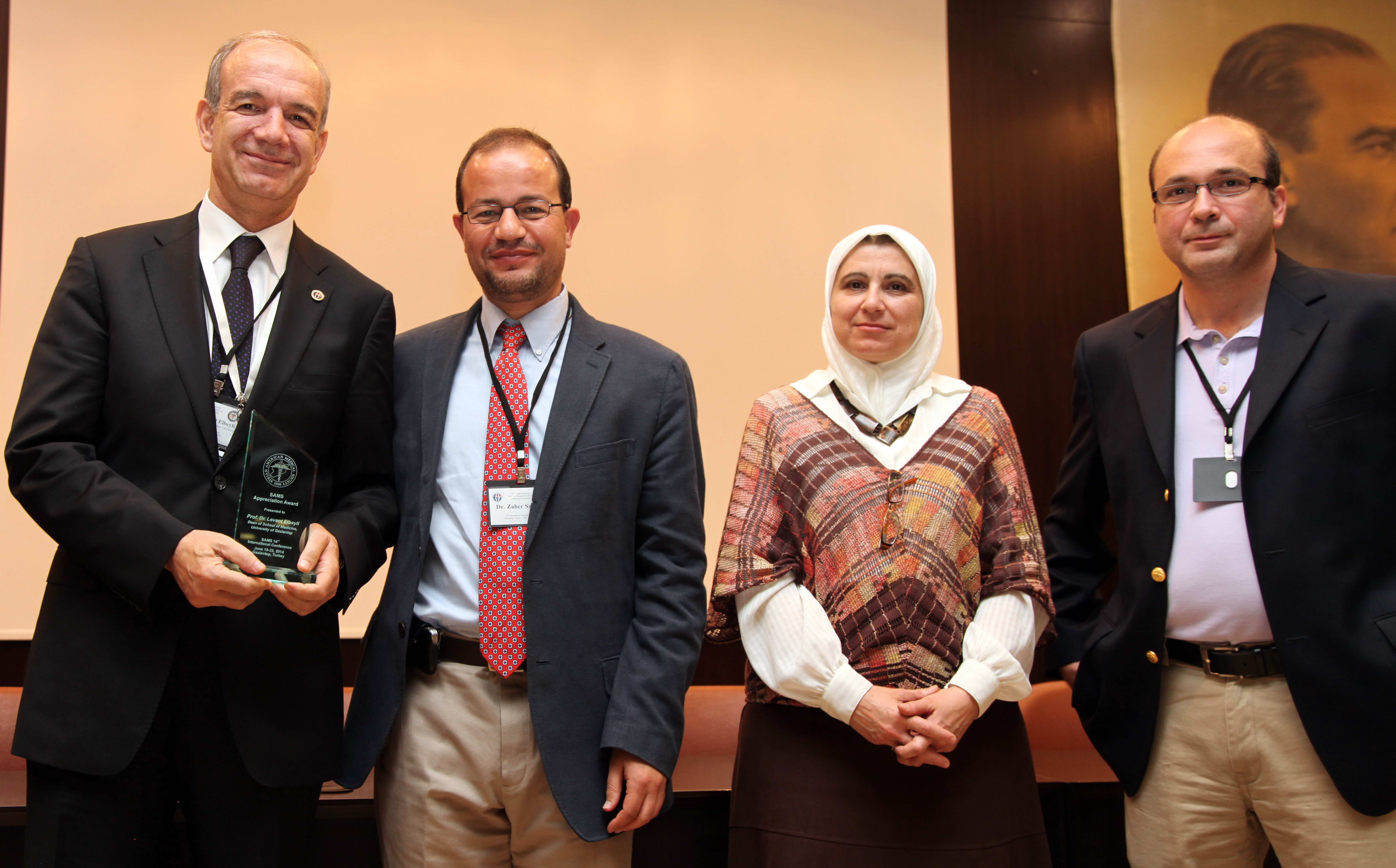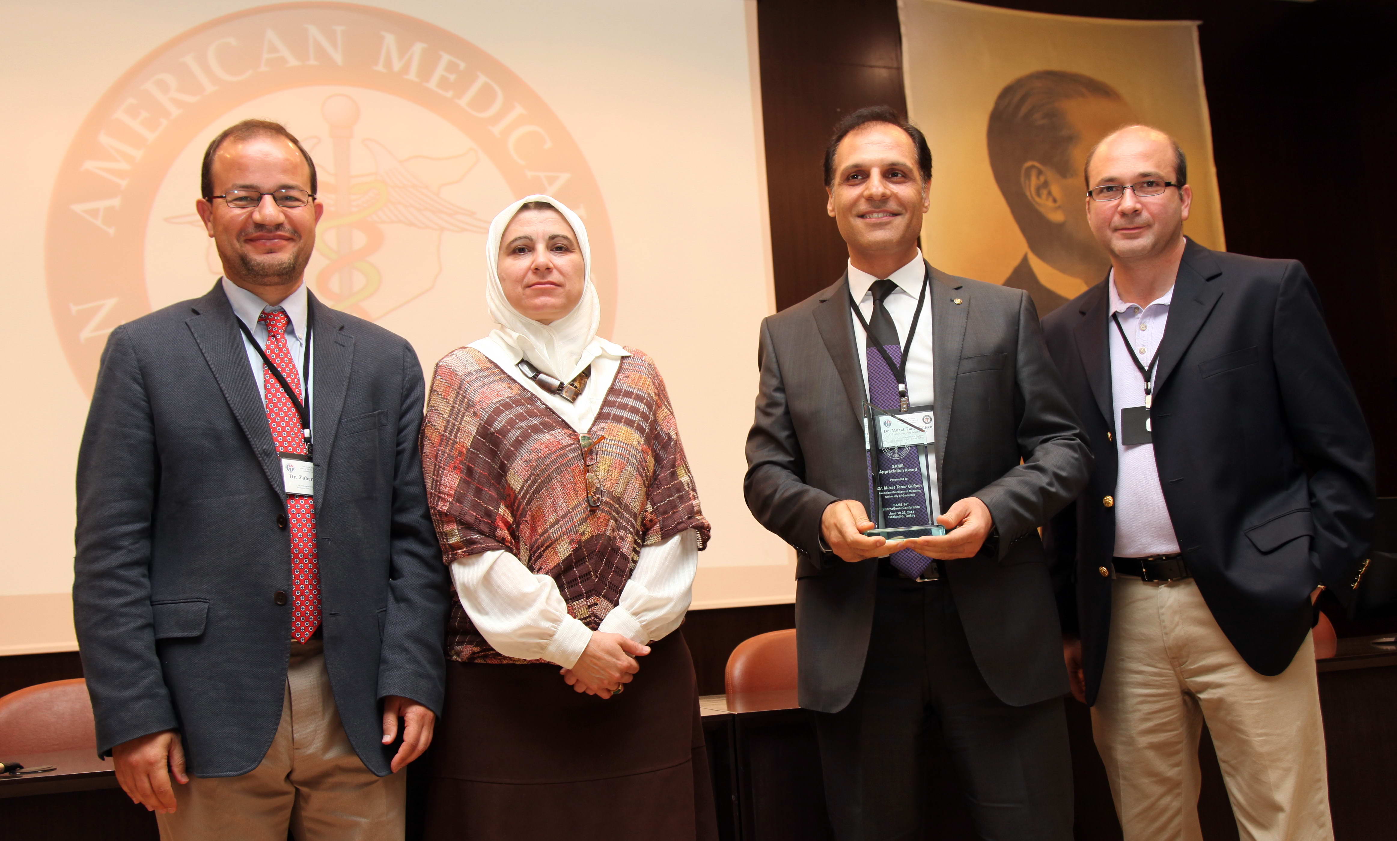 Açılış konuşmalarının sonunda SAMS Başkanı Zaher Sahloul tarafından, Gaziantep Üniversitesi Rektörü Prof. Dr. M. Yavuz Coşkun, Kızılay adına Serkan Yılmazkurt, SEMA Yönetim Kurulu Üyesi Yasser Tabaa, GAÜN Tıp Fakültesi Dekanı Prof. Dr. Levent Elbeyli ve GAÜN Şahinbey Araştırma ve Uygulama Hastanesi Başhekim Yardımcısı Doç. Dr. Murat Taner Gülşen’e plaket takdim edildi.