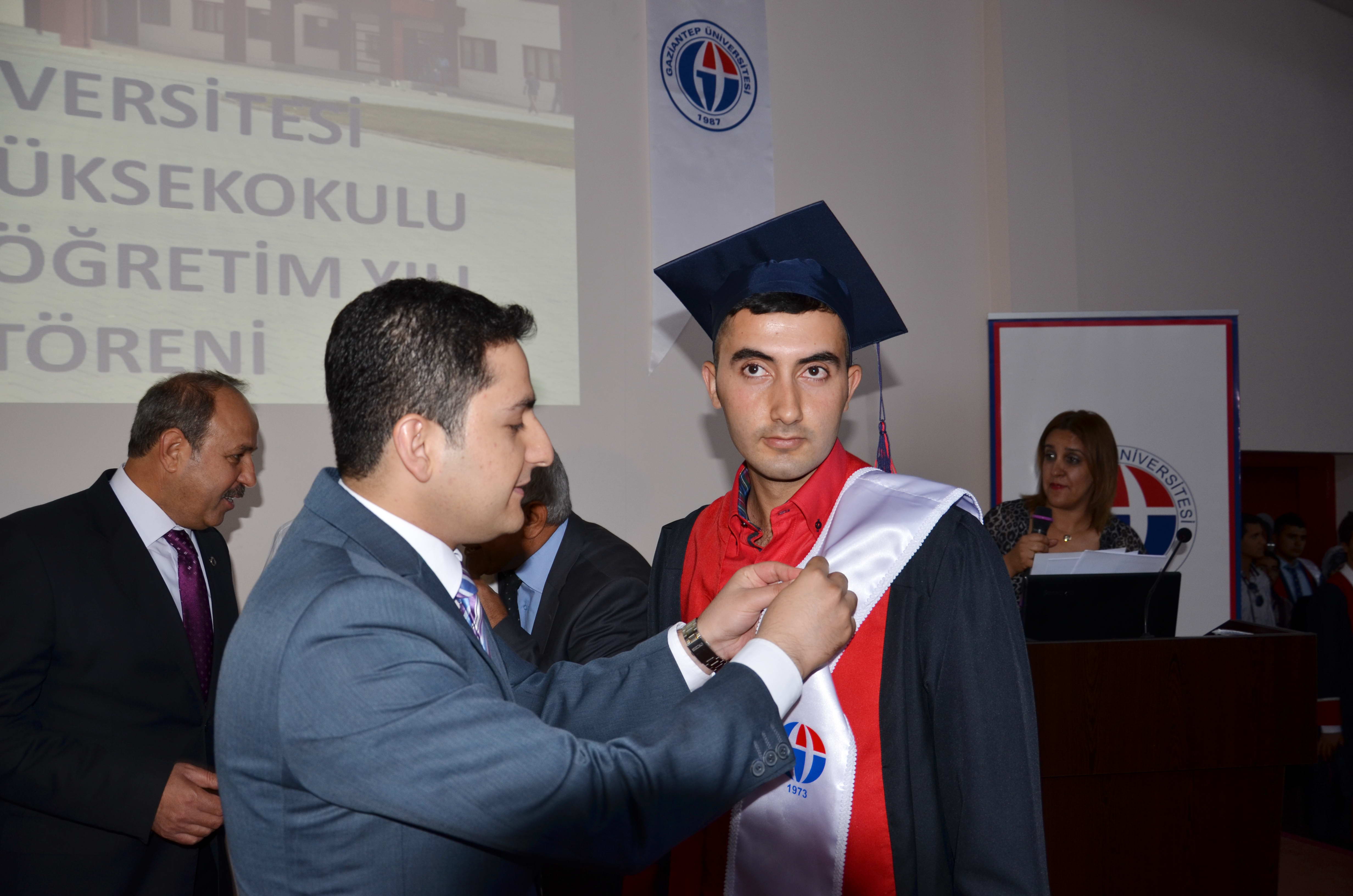 Oğuzeli Meslek Yüksekokulu Birincisi Özel Güvenlik ve Koruma Programı Öğrencisi Haci Güzen’in mezunlar adına konuşma yapmasının sonrasında Gaziantep Üniversitesi Rektörü Prof. Dr. M. Yavuz Coşkun’un sinevizyon gösterisi ile mezunlara ilettiği mesajı salonda büyük alkış aldı.