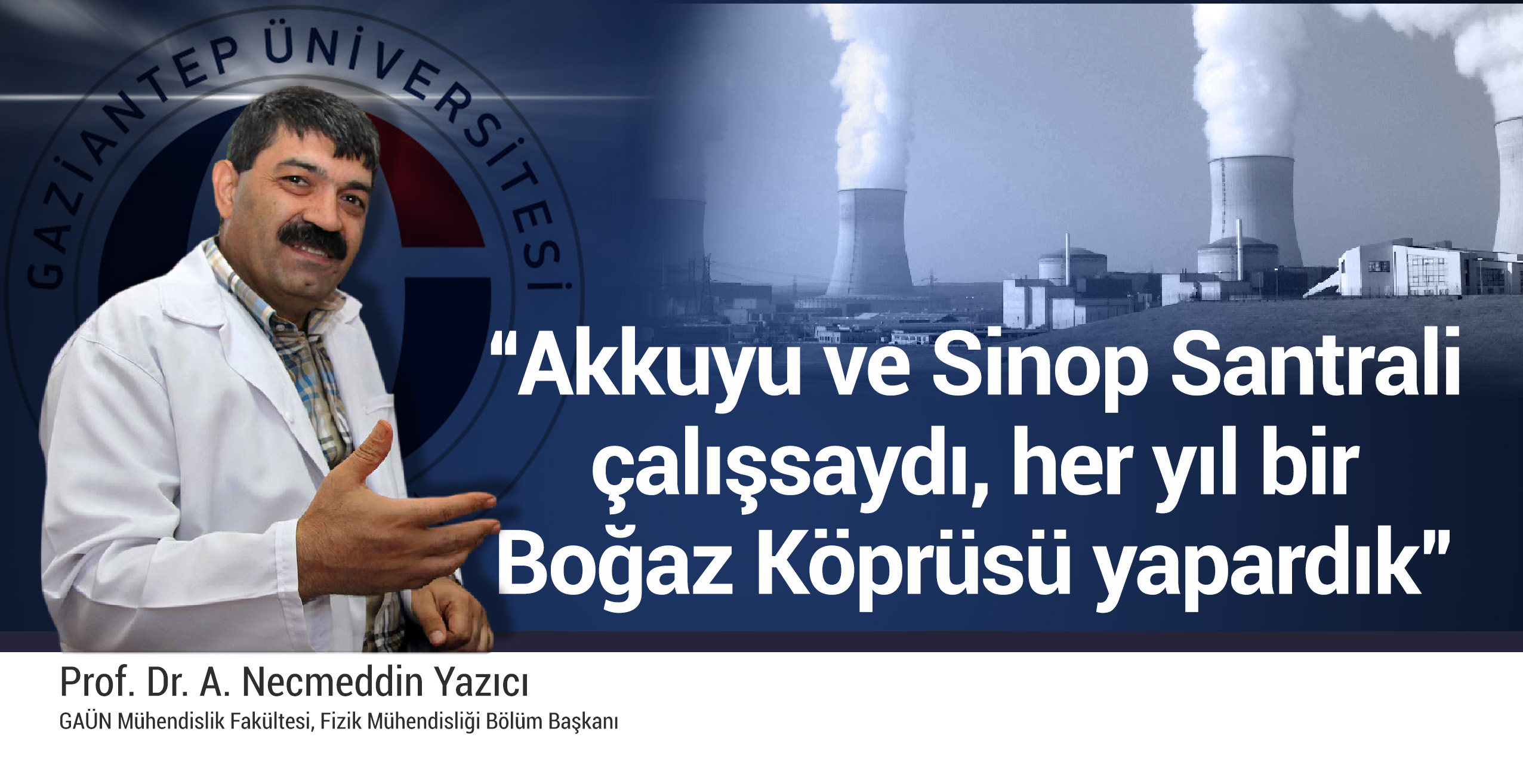 Gaziantep Üniversitesi Mühendislik Fakültesi Fizik Mühendisliği Bölüm Başkanı ve Türkiye Atom Enerji Kurumu (TAEK) Danışma Kurulu Üyesi Prof. Dr. A. Necmeddin Yazıcı, dünyanın petrol zengini ülkelerinin bile nükleer santraller kurduğunu belirterek, “Türkiye 2023 hedefine ulaşmak istiyorsa mutlaka nükleer santraller kurmalıdır. Eğer, şuanda Sinop ve Akkuyu Nükleer Enerji Santrali çalışıyor olsaydı, elektrik üretimimizin yüzde 30’unu karşılıyor olacaklardı. Bir başka ifadeyle, her yıl bir boğaz köprüsü yapacaktık” dedi.