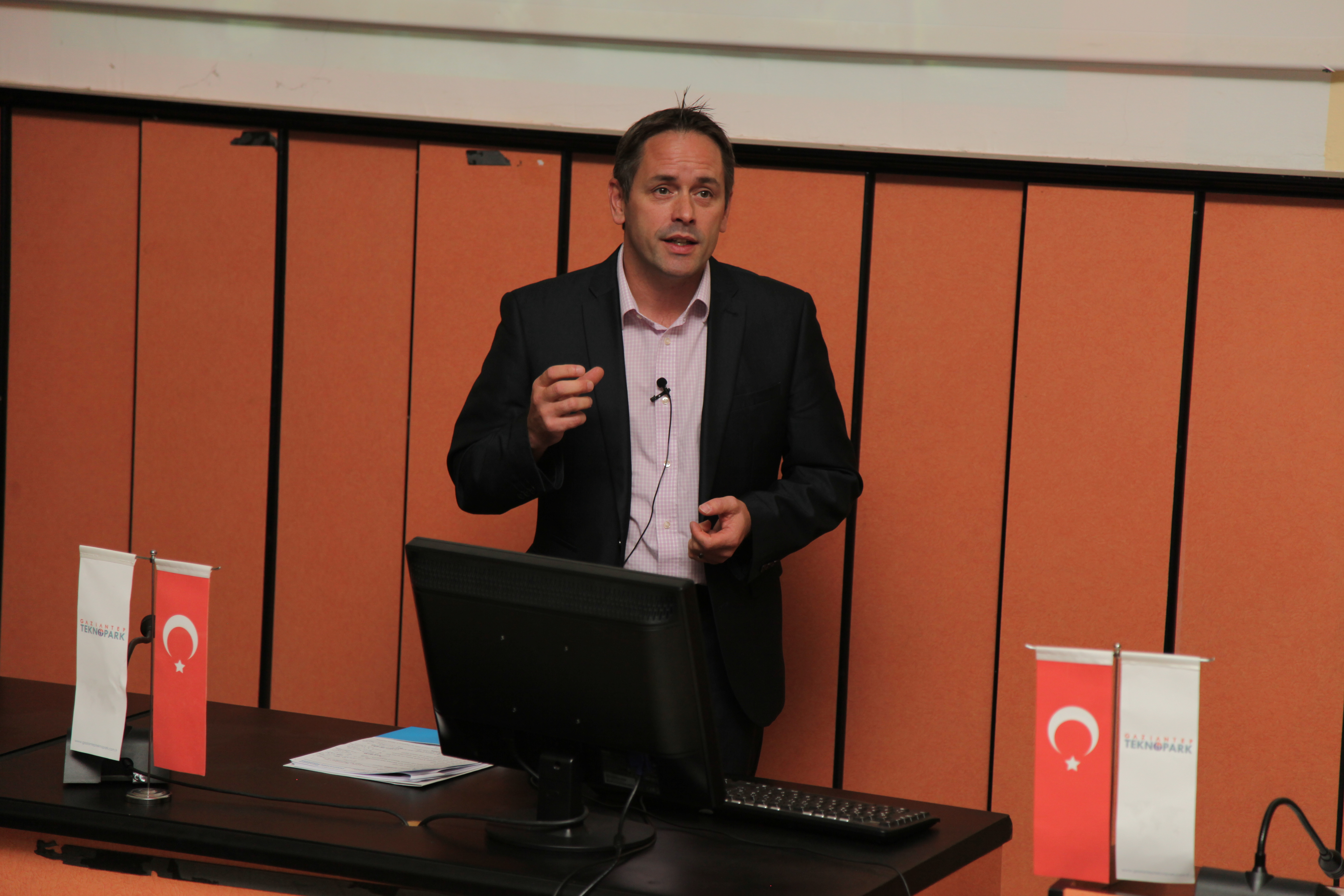 Üniversitelerin inovasyon yapma olasılığını artırdığının ve işgücü becerilerini geliştirdiğinin altını çizen Aston Üniversitesi İş Geliştirme Müdürü Tony Jay, “Uygulamaya yönelik tesis ve ekipmanlara yatırım yapılması, inovasyon talebini artıran projelerin desteklenmesi, mezunların ve araştırmacıların önemli seviyede iş dünyasıyla temas kurmalarının sağlanması ve girişimciliğin gerçekçi bir şekilde teşvik edilmesi gibi yöntemler, ortaklık kurulan kurumların işgücünü geliştirilmesi için fırsatlar sunar” diye konuştu. Özel sektör ile işbirliği konusunda katılımcılara bilgi veren Aston Üniversitesi İş Ortaklıkları ve Toplumsal Katılım Departmanı Dekan Yardımcısı Ben Clegg ise, seminerde bilgi ve teknoloji transferi mekanizmalarını ve adımlarını anlattı.