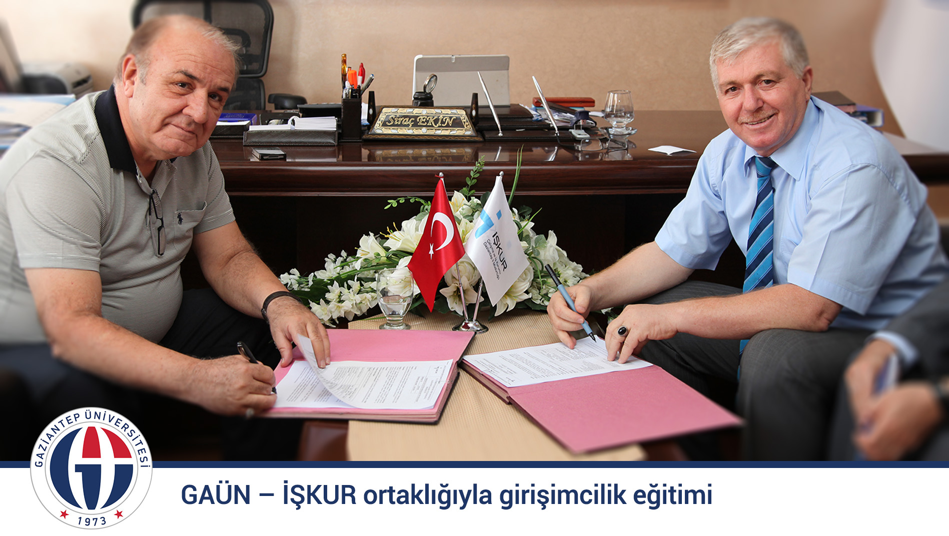İşsiz gençlerin eğitim alarak kendi iş kurmalarının ilk basamağı olan Uygulamalı Girişimcilik Destek Programı’nın protokolü Gaziantep Üniversitesi Rektörü Prof. Dr. Yavuz Coşkun ve İŞKUR İl Müdürü Sıraç Ekin tarafından imzalandı. İmza töreninde konuşan Rektör Prof. Dr. Coşkun, İŞKUR ile birçok önemli proje ortaklığı yapacaklarını belirtti. İŞKUR Müdürü Ekin ise, önümüzdeki günlerde bir istihdam fuarının da aralarında bulunduğu projelerde GAÜN ile çalışacaklarını dile getirdi. GAÜN’ün eğitim ayağını üstlendiği program çerçevesinde 150 işsiz, 9’ar günlük eğitim verilecek.