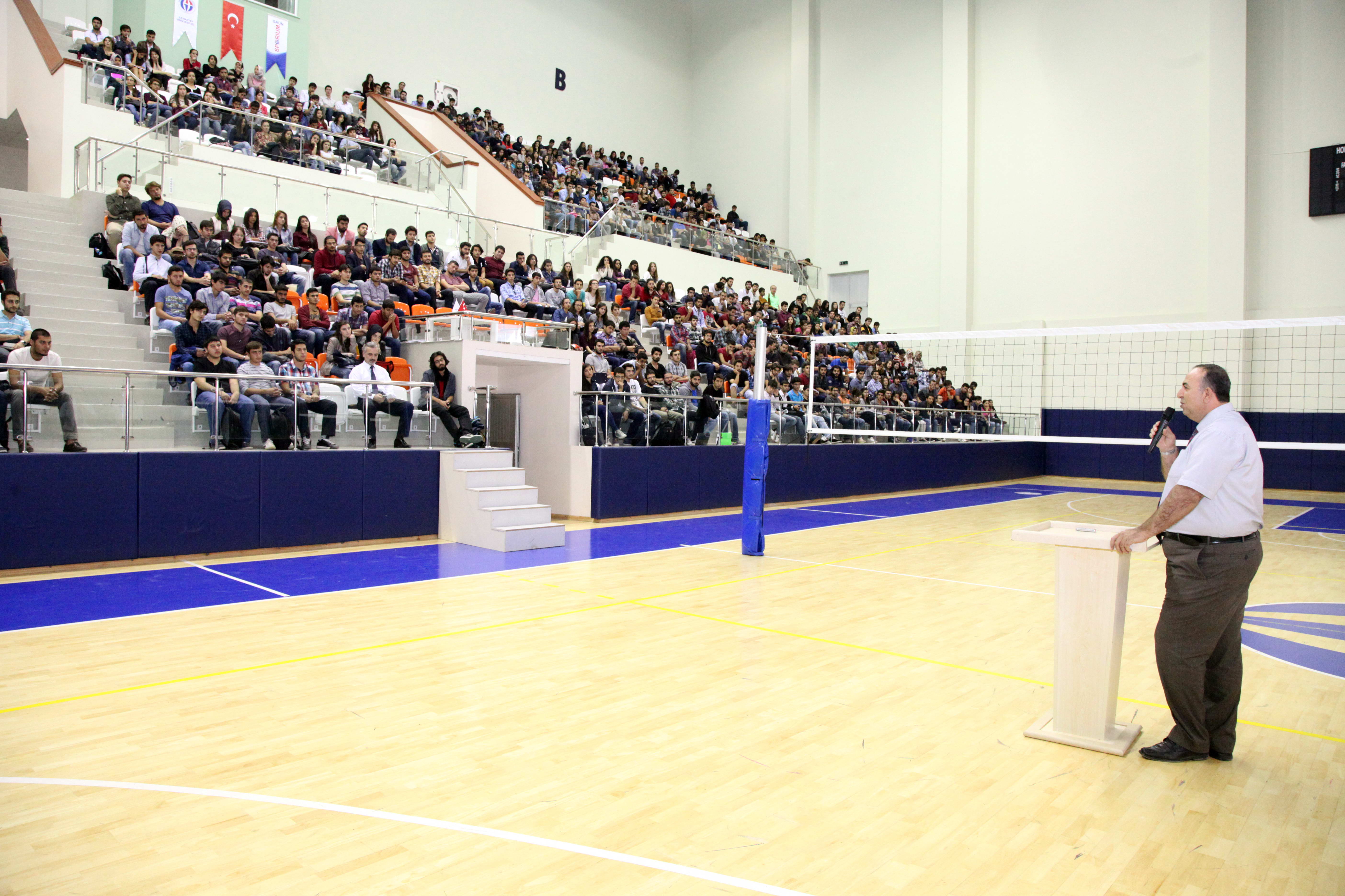GAÜN Sporium’da (GAÜN Spor Kompleksi) düzenlenen ve büyük ilgi gören toplantının açılışında öğrencilere seslenen GAÜN Mühendislik Fakültesi Dekanı Prof. Dr. Mustafa Bayram, bundan sonra mühendislik fakültesi öğrencileri için artık yeni bir sürecin başladığını söyledi. Prof. Dr. Bayram, “Biz farklı düşünebilen fark oluşturan yenilikçi mühendisler yetiştirmek istiyoruz. Her birinizin kendi özgüveninizle, bilginizle ve birikiminizle hayata daha farklı bakabilen ve değer katan insanlar olabilmeniz için var gücümüzle çalışıyoruz. Üniversite, sizi hayata hazırlayan önemli bir süreçtir” dedi.