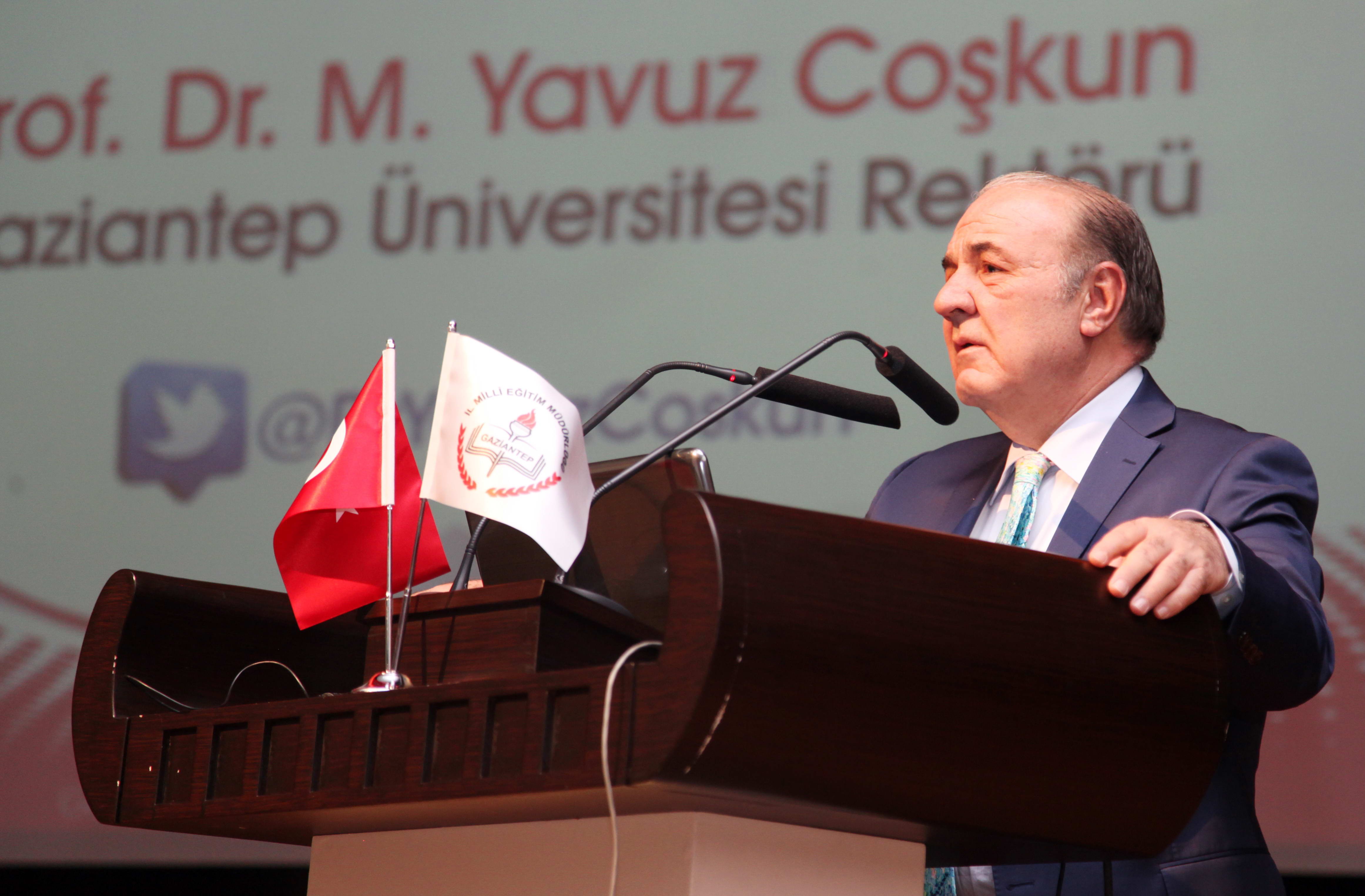 Programın açılış konuşmasını yapan Gaziantep Üniversitesi Rektörü Prof. Dr. Coşkun, eğitimin olmazsa olmaz ayaklarımızdan bir tanesi olduğunu belirterek, “Çok önemli, ciddi ve kutsal bir işe imza attığımızı düşünüyorum. Bir yandan yükseköğretimde nitelikli insan yetiştirmeye çalışıyoruz ama bir yandan da araştırma, geliştirme, hizmet üretimi yeni bilgiler üretme noktasında bir görevimiz var. Bir şeyleri yapıyormuş gibi olma noktasında değiliz. Eğitim bugünde, geçmişte çok ciddi sorunları, kaosları olan ve bir türlü rayına oturtulamayan son yüzyılda, cumhuriyet döneminde ıskaladığımız ve ciddi gelişmeler sağlayamadığımız çok önemli bir alandır” şeklinde konuştu.