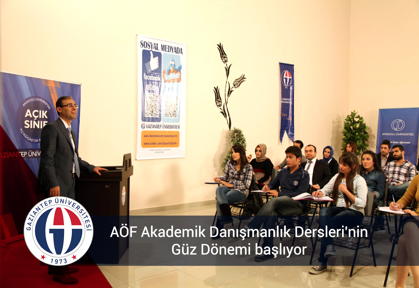Anadolu Üniversitesi’nin uzaktan öğretim yapan Açıköğretim, İktisat ve İşletme Fakülteleri öğrencilerine yönelik yüz yüze Akademik Danışmanlık Derslerinin Güz Dönemi, Gaziantep Üniversitesi (GAÜN) kampusünde 2 Kasım 2014 Pazar günü başlıyor. 11 hafta sürecek dersler 18 Ocak 2015 Pazar günü sona erecek.