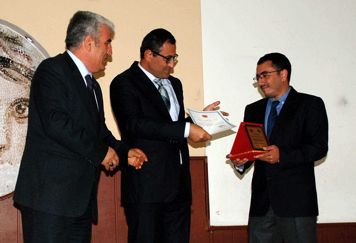 Konferansın sonunda Yrd. Doç. Dr. Erhan Tunç’a plaket ve teşekkür belgesi Nizip Kaymakamı Harun Sarıfakıoğulları ve Nizip Eğitim Fakültesi Dekanı Prof. Dr. Mehmet Özaslan tarafından takdim edildi.
