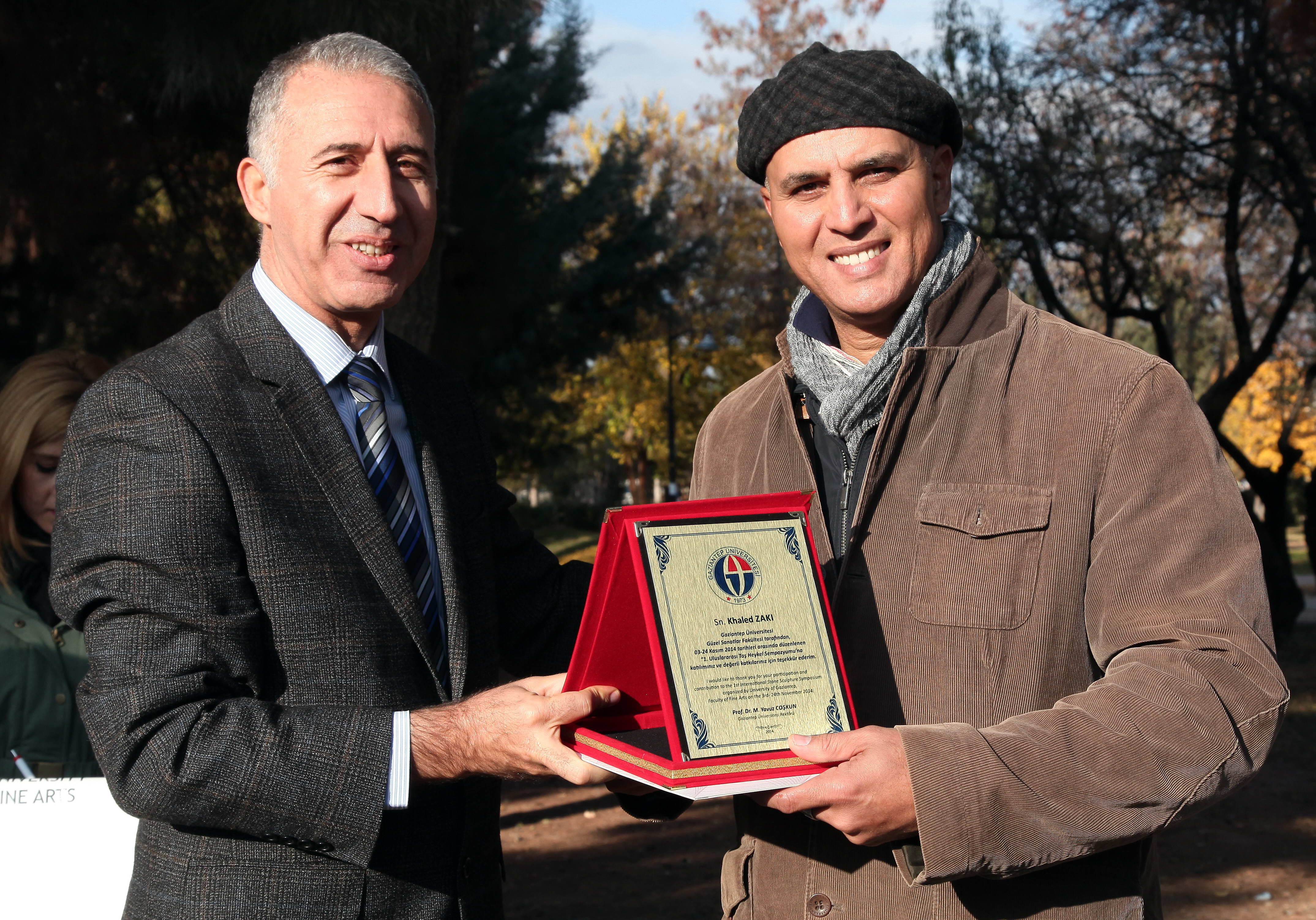 Açılış konuşmaları sonrasında; Gaziantep Üniversitesi Rektörü Prof. Dr. Yavuz Coşkun tarafından Butrint Morina, Francesco Panceri, Gemma Dominguez’e, Rektör Yardımcısı Prof. Dr. Fahrettin Göğüş tarafından Khaled Zaki ve Majid Hanhighi’ye, Gaziantep Polis Meslek Yüksekokulu Müdürü Hüseyin Ateş tarafından Renate Verbrugge ve Robin David’e, GAÜN Rektör Yardımcısı Prof. Dr. Ali Gür tarafından Selçuk Yılmaz ve So Dong Choe’ye, Rektör Yardımcısı Prof. Dr. Cahit Bağcı tarafından Varol Topaç ve Zhang Ce’ye, Rektör Yardımcısı Prof. Dr. Türkay Dereli tarafından Ayhan Özer ve misafir sanatçı Ulises Yimenez Obregon’a plaket takdim edildi.