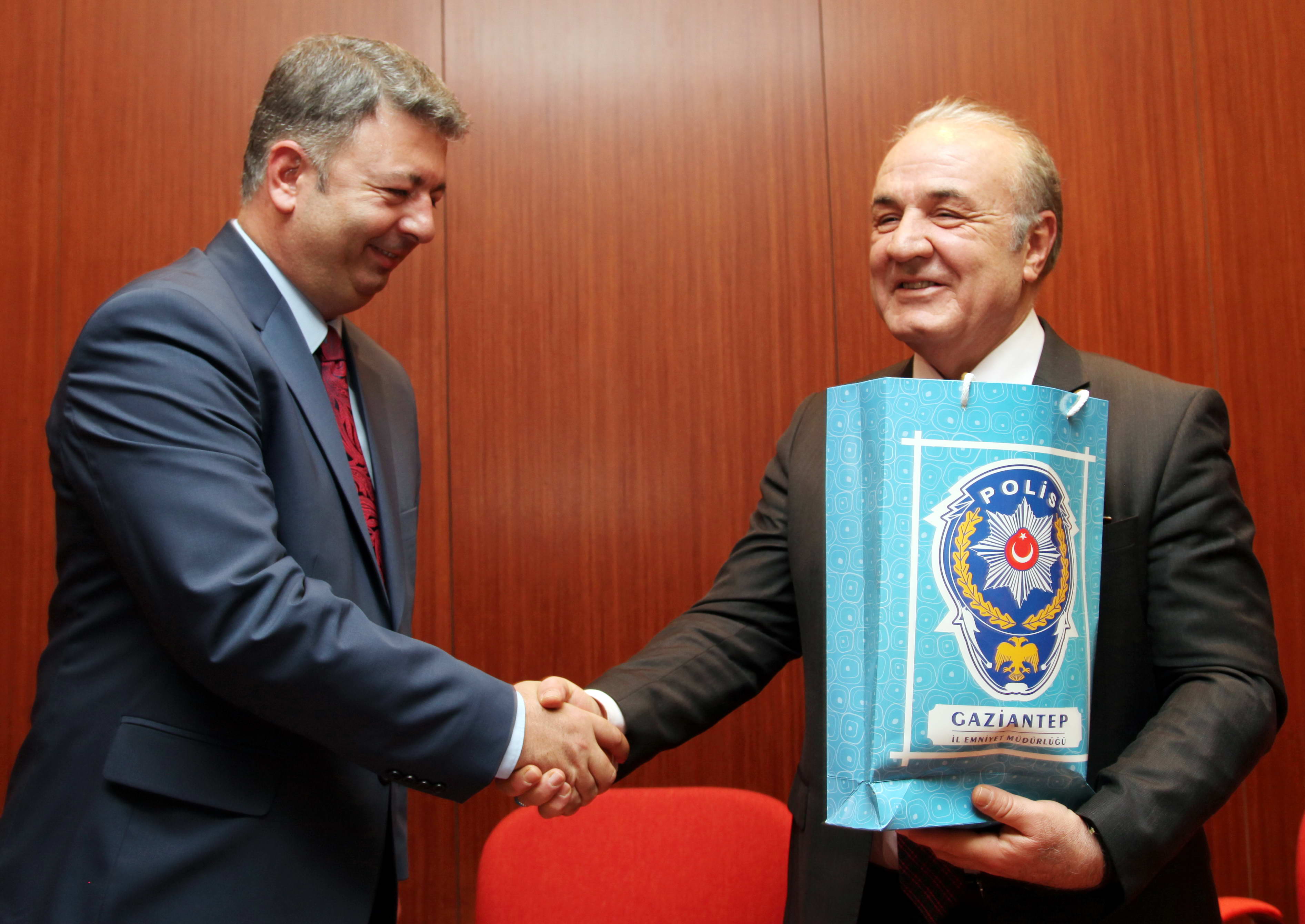 Sohbetin sonrasında, Gaziantep Terörle Mücadele Şube Müdürü Güray Acar tarafından Prof. Dr. M. Yavuz Coşkun’a hediye takdim edildi.
