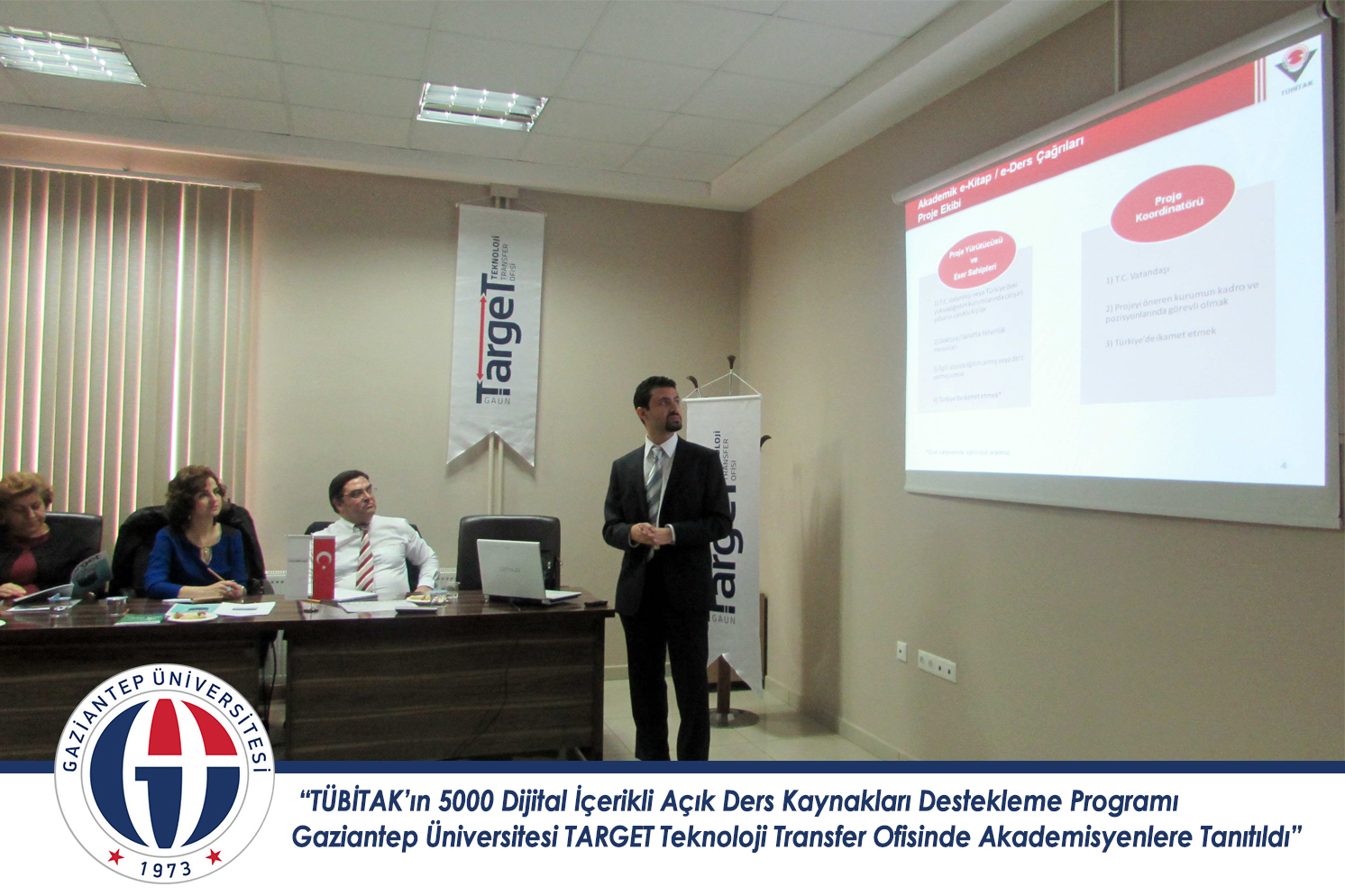 TÜBİTAK Bilim ve Toplum Dairesi Başkanlığı Kitaplar Müdürlüğü tarafından, Gaziantep Üniversitesi TARGET Teknoloji Transfer Ofisinde “Akademik E-Kitap Çağrısı ve Akademik E-Ders Çağrısı ” konulu bilgilendirme toplantısı gerçekleştirildi.
