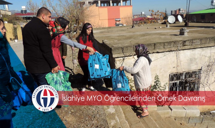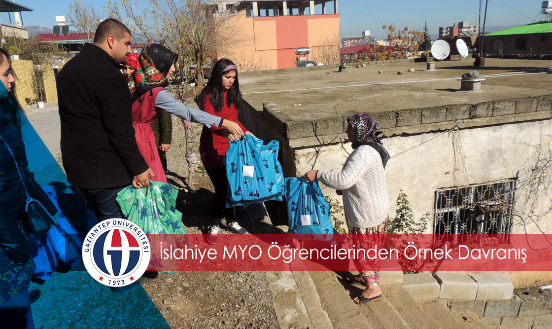 Gaziantep Üniversitesi (GAÜN) İslahiye Meslek Yüksekokulunda eğitim gören öğrenciler hazırladıkları yardım paketlerini ihtiyaç sahiplerine vererek örnek davranış sergiliyor.