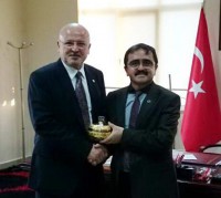 Prof. Dr. Sınav ise, mesleki eğitimin önemine işaret ederek başarı dileklerinde bulundu. Ziyaret sonunda seramik ve cam programı öğrencileri tarafından hazırlanan cam obje Prof. Dr. Cahit Bağcı tarafından SANKO Üniversitesi Rektörü Prof. Dr. Ahmet Sınav’a hediye edildi.
