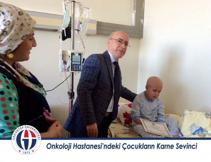 Gaziantep Üniversitesi (GAÜN) Onkoloji Hastanesi Pediatrik Hematoloji Bilim Dalı’nda tedavi gören çocuklar, yatak başı eğitimlerinde ve Hastane Sınıfı’nda almış oldukları eğitimin yarıyılında karne sevinci yaşadı.