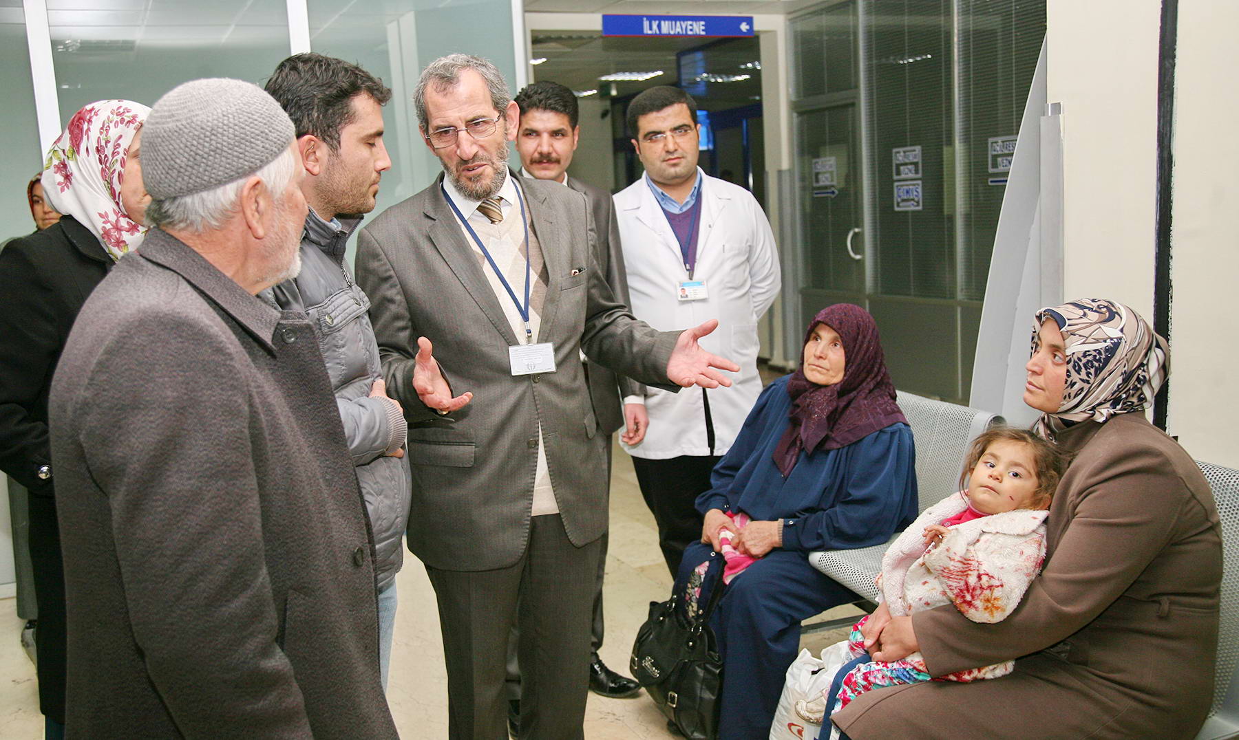 Taşkınlık yapan hasta yakınlarını sakinleştiriyor, moral ve motivasyonunu yükseltiyor. İsteyene Kur’an-ı Kerim okuyor
