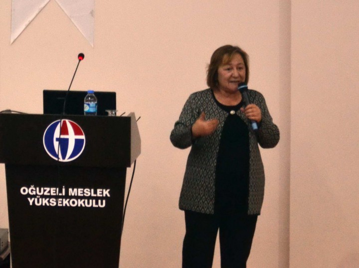 Gaziantep Üniversitesi (GAÜN) Oğuzeli Meslek Yüksekokulu’nda “8 Mart Dünya Kadınlar Günü” kapsamında “Kadına Yönelik Şiddet” ile ilgili Kadın Merkezi Vakfı (KAMER) Gaziantep İl Temsilcisi Aynur Yıldıran tarafından konferans gerçekleştirildi.