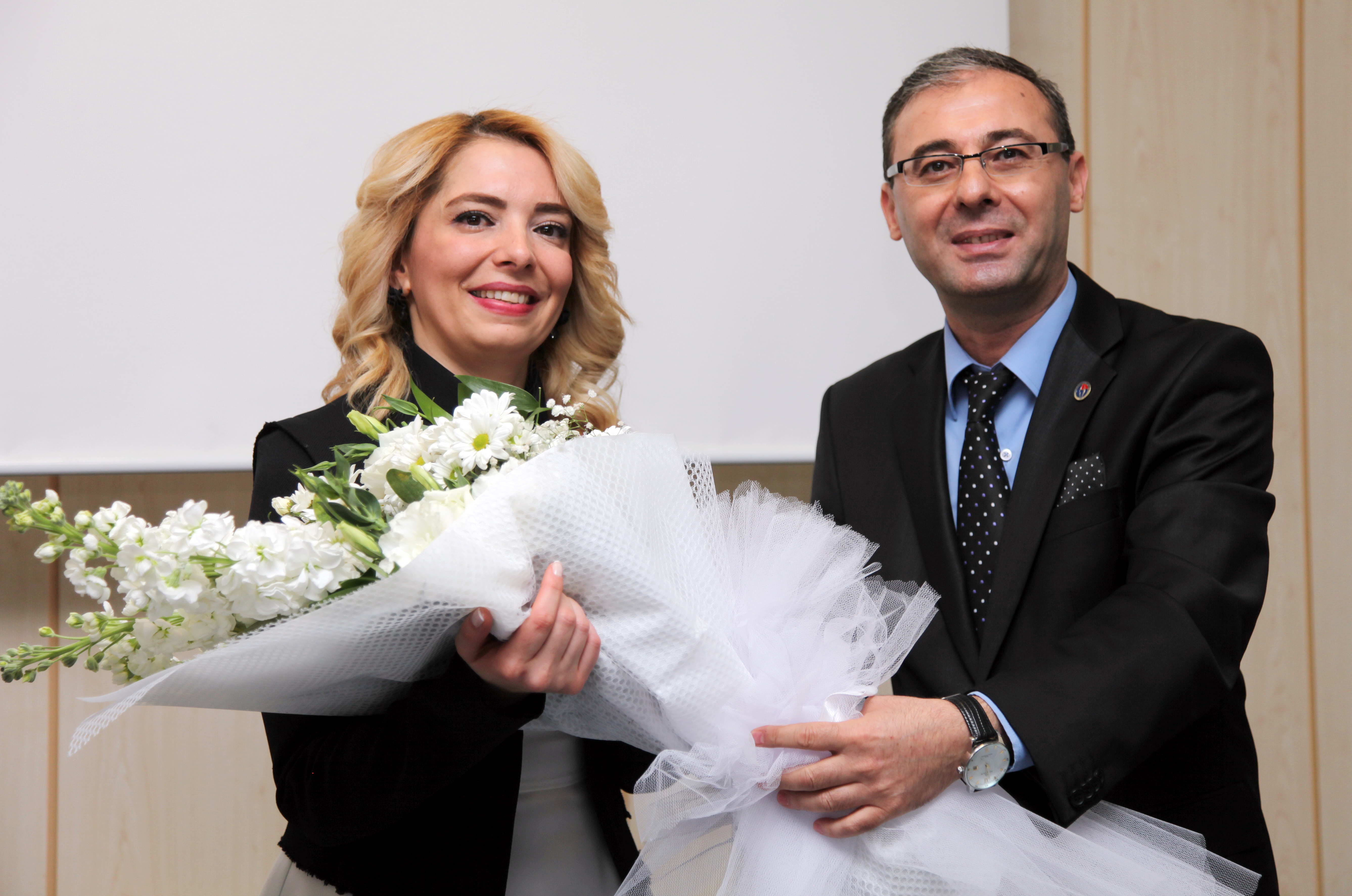 Konferansın sonunda; GAÜN Sosyal Bilimler Meslek Yüksekokulu Müdürü Yrd. Doç. Dr. Metin Yıldırım tarafından GAÜN Öğr. Gör. Pınar Gün’e çiçek takdim edildi.