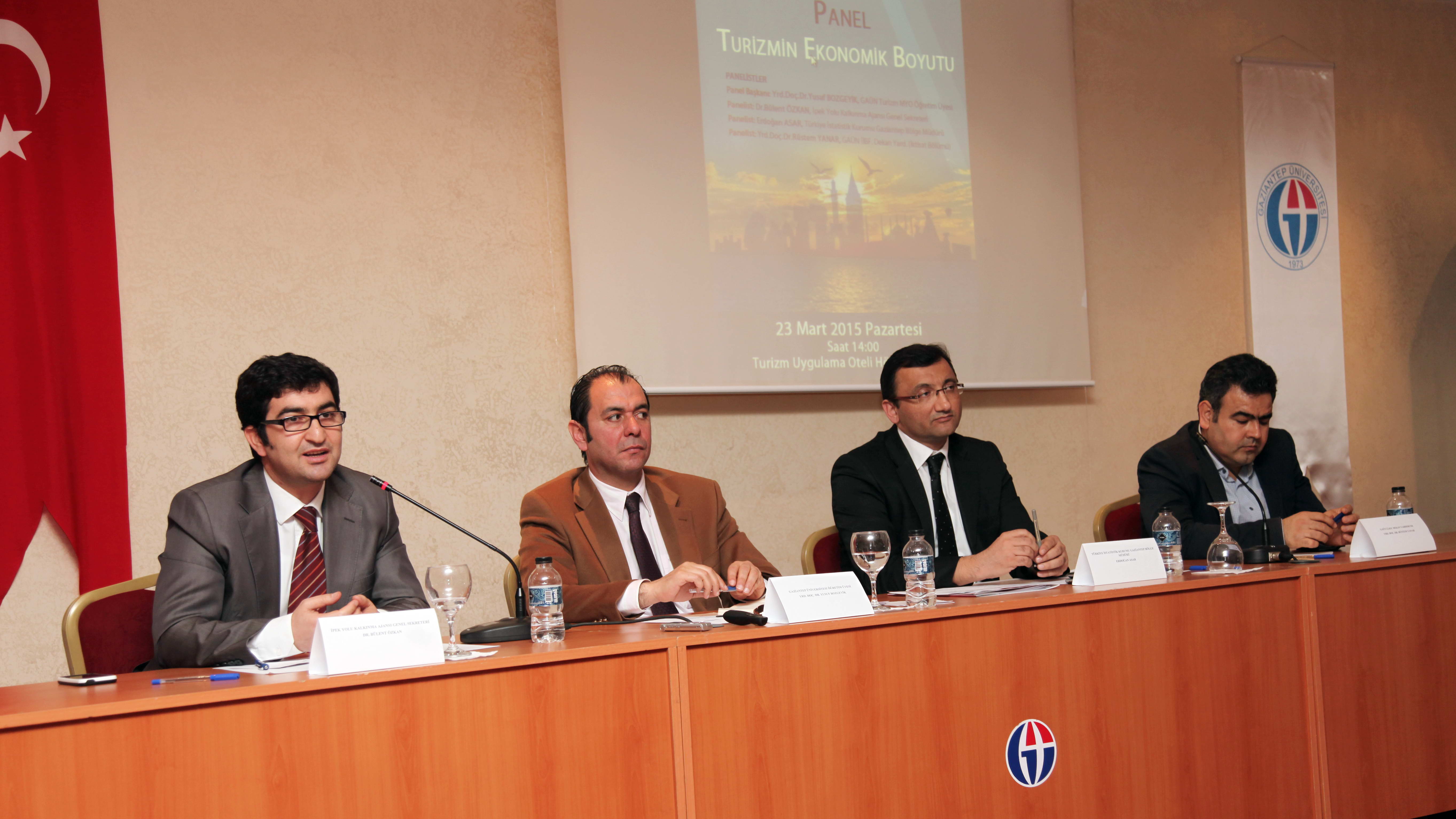 Gaziantep Üniversitesi (GAÜN) Turizm Otelcilik Meslek Yüksekokulu tarafından hazırlanan “Turizm ve Ekonomik Boyutu” adlı panel GAÜN Turizm ve Otelcilik Meslek Yüksekokulu Uygulama Oteli Hönüsü Salonunda yapıldı. GAÜN Turizm ve Otelcilik MYO Öğretim Üyesi Yrd. Doç. Dr. Yusuf Bozgeyik’in başkanlığını yaptığı panele; İpek Yolu Kalkınma Ajansı Genel Sekreteri Dr. Bülent Özkan, Türkiye İstatistik Kurumu Gaziantep Bölge Müdürü Erdoğan Asar ve GAÜN…
