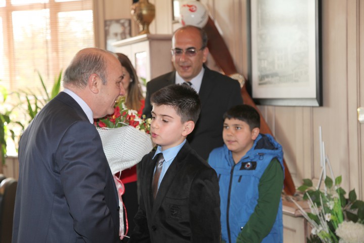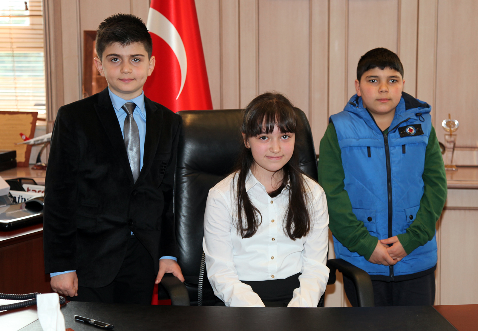 23 Nisan Ulusal Egemenlik ve Çocuk Bayramı etkinlikleri çerçevesinde; Nefise Necip Teymur İlkokulu öğrencilerinden Elif Naz Kayadaleren, Çağan Şahin ve Cahit Doğan GAÜN Rektörü Prof. Dr. Yavuz Coşkun’u makamında ziyaret etti.