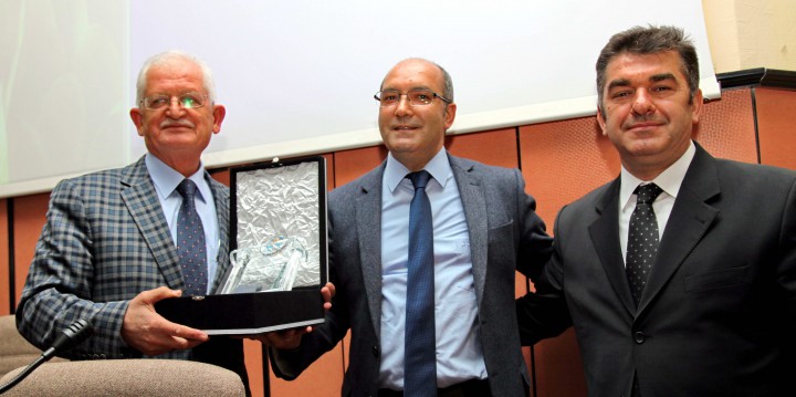 GAÜN Rektör Yardımcısı Prof. Dr. Cahit Bağcı’nın da katıldığı konferansın sonunda, GAÜN Rektör Yardımcısı Prof. Dr. Ali Gür tarafından Prof. Dr. Adem Tatlı’ya hediye takdim edildi.