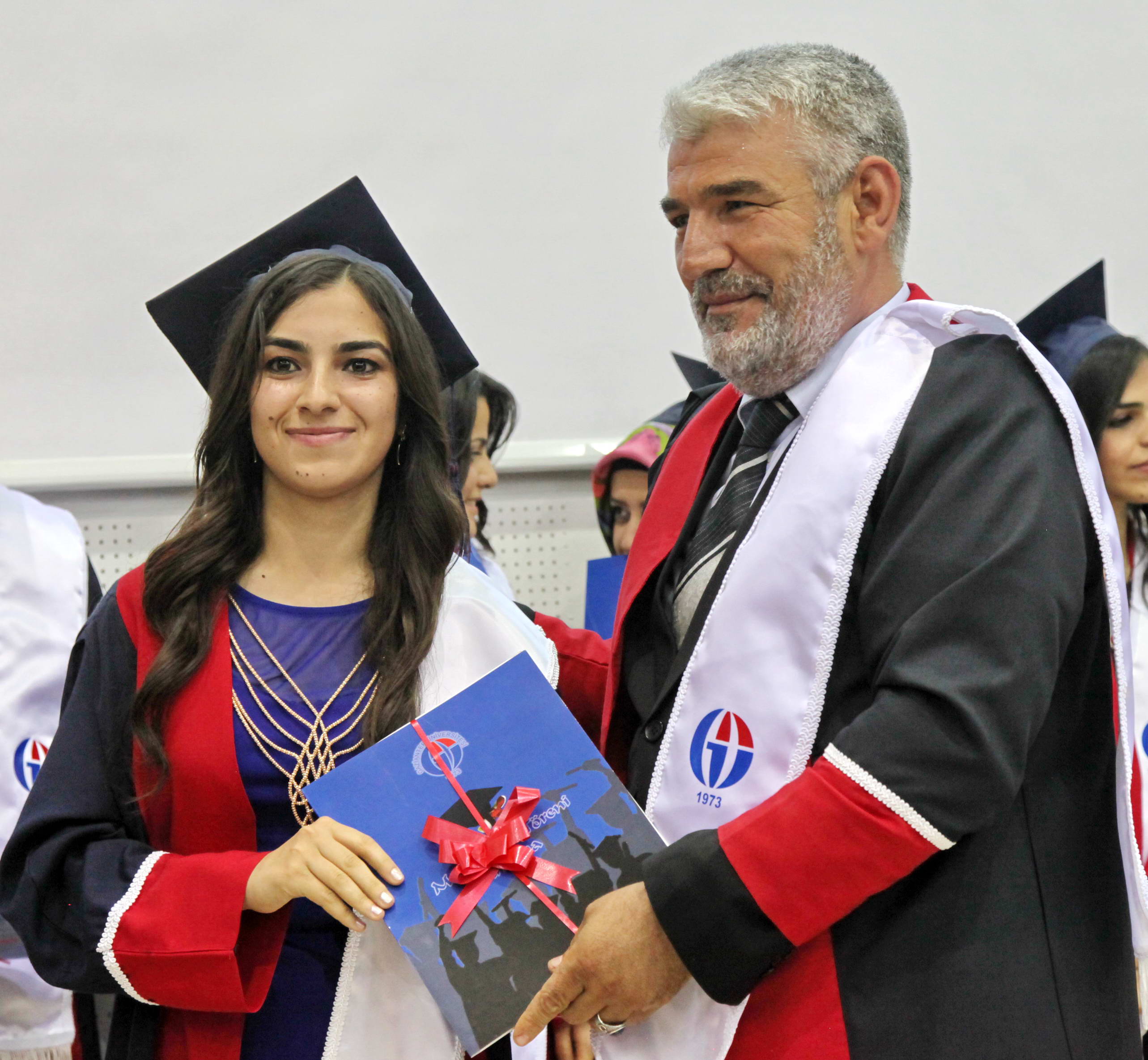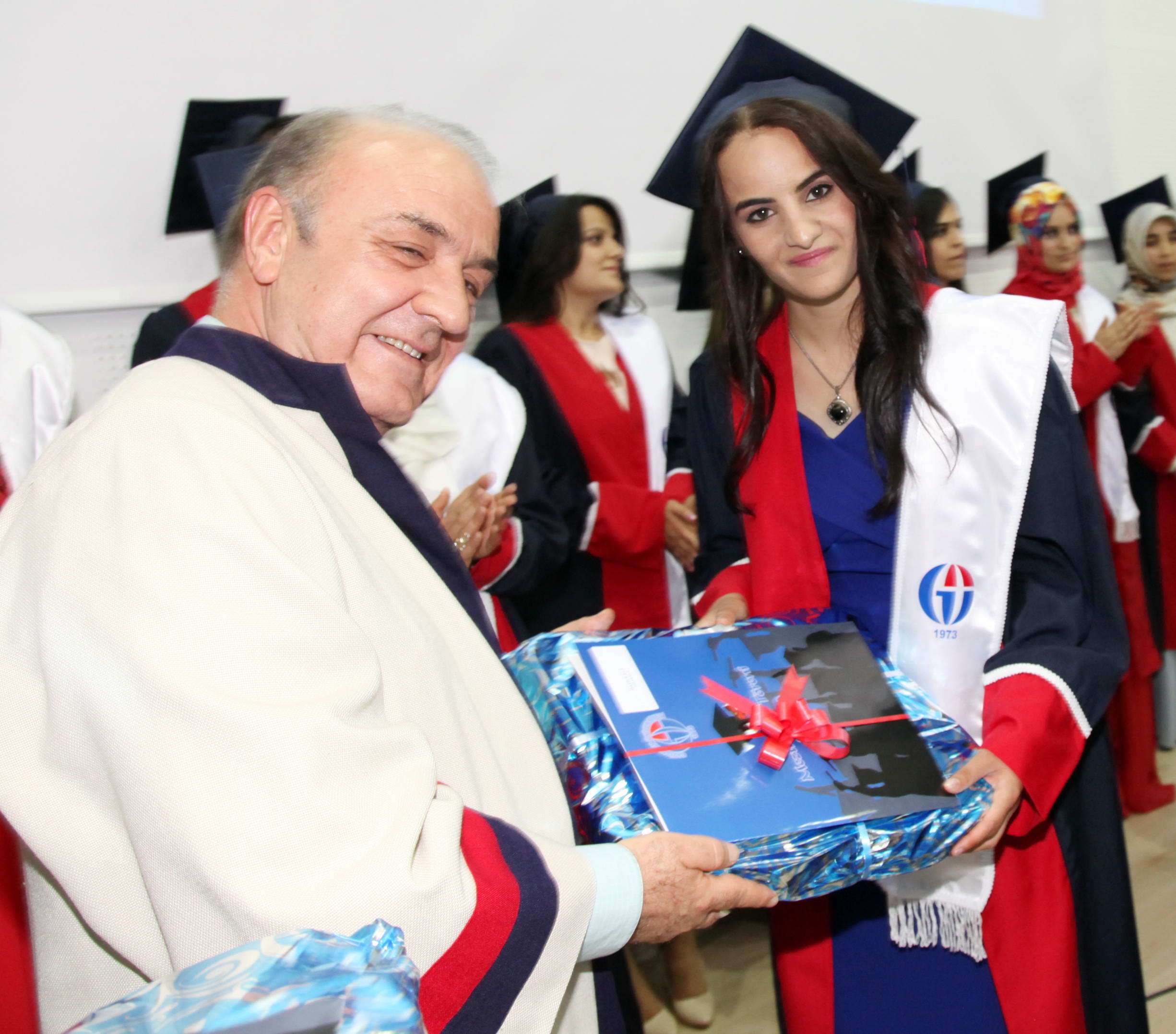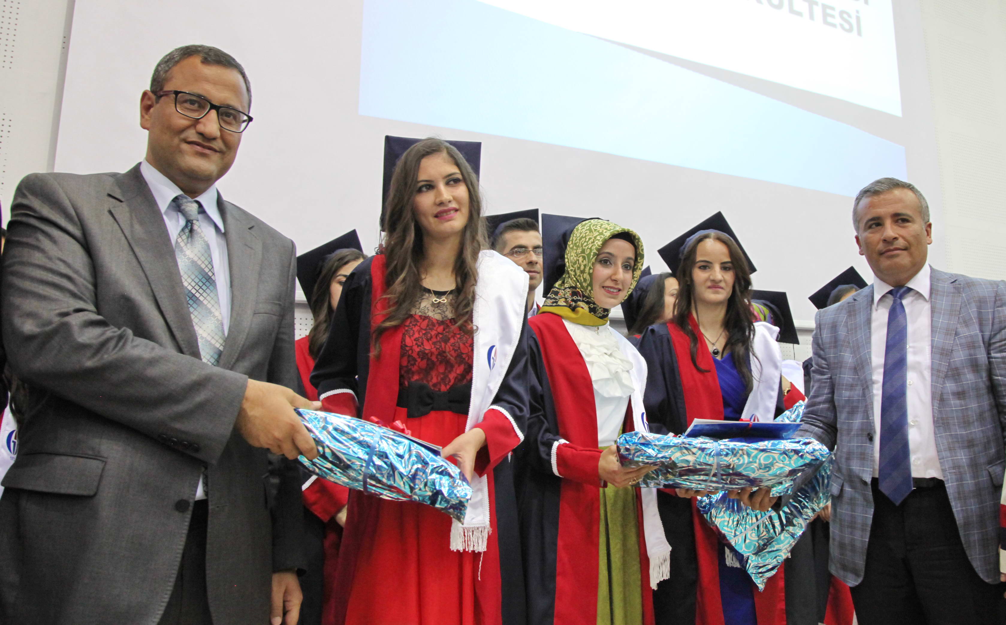 GAÜN Nizip Eğitim Fakültesinde dereceye giren fakülte birincisi Hatice Ege, ikinci Ümran Demir ve üçüncüler Melek Yılmaz ile Kayahan Çörük’e diplomaları Rektör Prof. Dr. M. Yavuz Coşkun, Büyükşehir Belediyesi Başkan Vekili Latif Karadağ, Nizip Kaymakamı Harun Sarıfakıoğulları, Nizip Eğitim Fakültesi Dekanı Prof. Dr. Mehmet Özaslan ve Gaziantep Polis Meslek Yüksekokulu Müdürü Suat Çelik tarafından verildi.