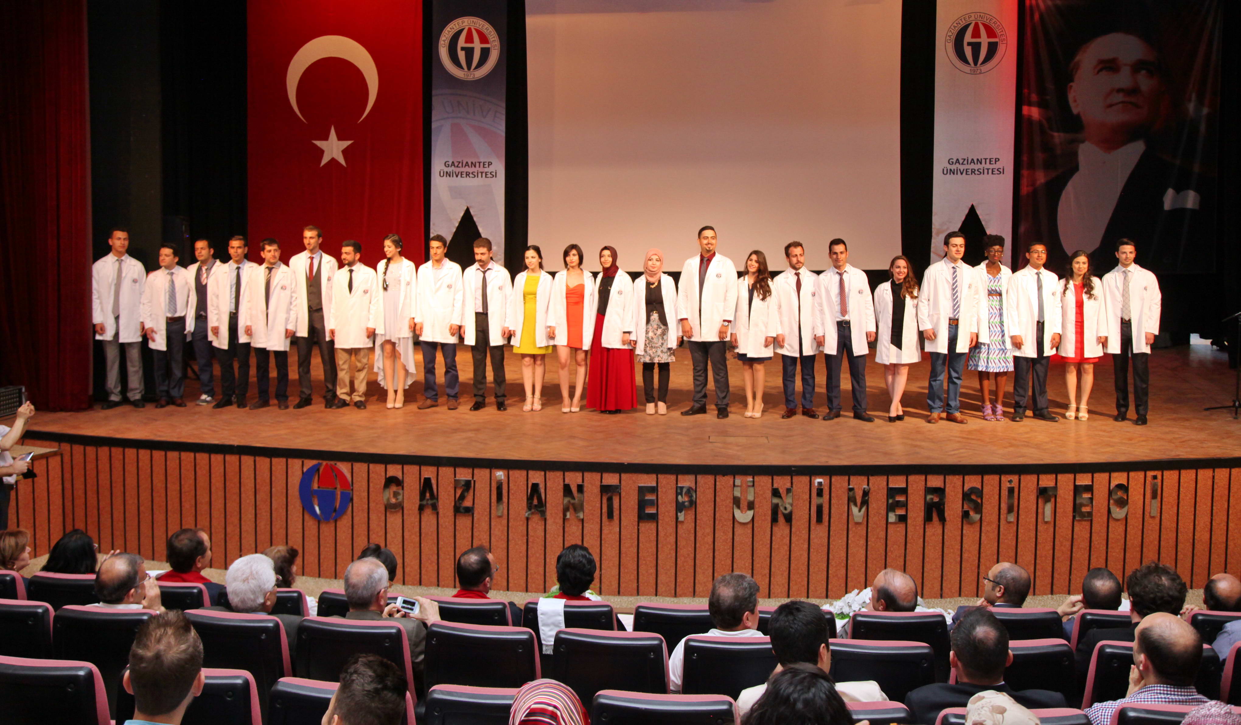 Gaziantep Üniversitesi (GAÜN) Tıp Fakültesi tarafından İngilizce ve Türkçe Tıp Dönem 3 öğrencileri için hazırlanan “Beyaz Önlük Giyme Töreni” GAÜN Atatürk Kültür Merkezinde gerçekleştirildi.