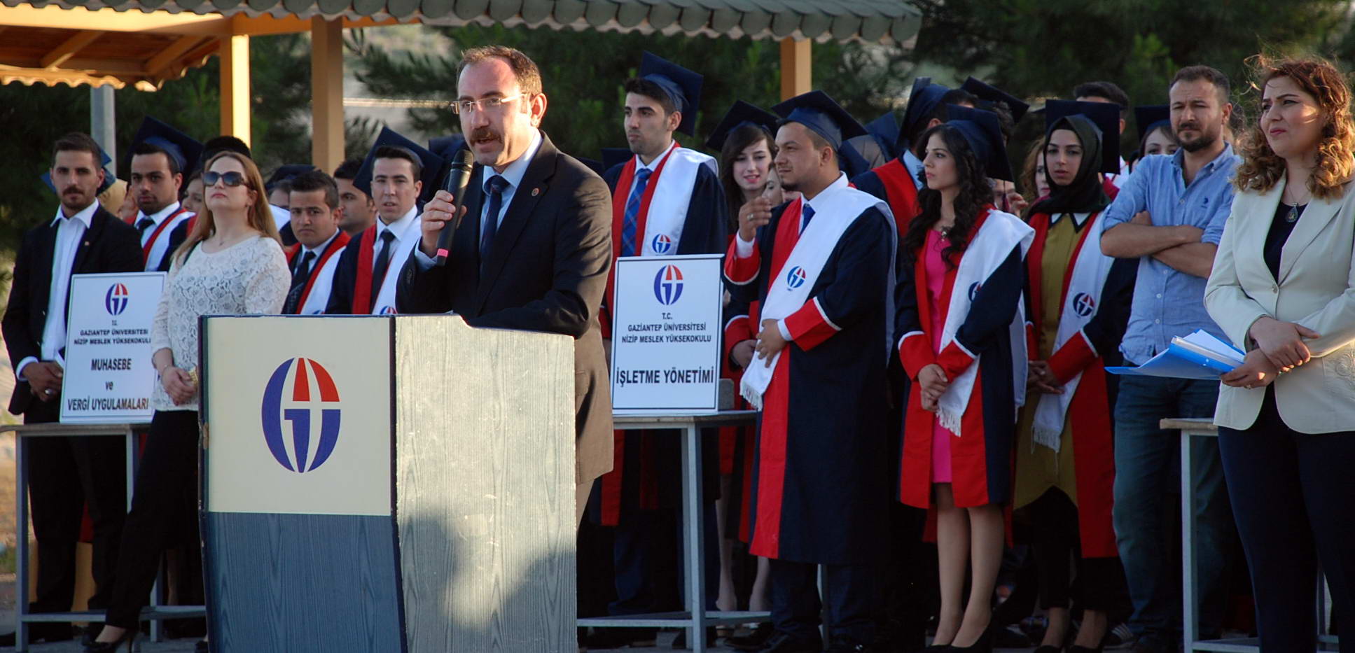 Gaziantep Üniversitesi (GAÜN) Nizip Meslek Yüksekokulunda mezuniyet töreni yapıldı. Saygı duruşu ve İstiklal Marşının okunmasıyla başlayan törene; Nizip Kaymakamı Harun Sarıfakıoğulları, Nizip Ticaret Odası Başkanı Mehmet Özyurt, ilçe protokolü, öğretim elamanları, öğrenci yakınları ve mezun öğrenciler katıldı.
