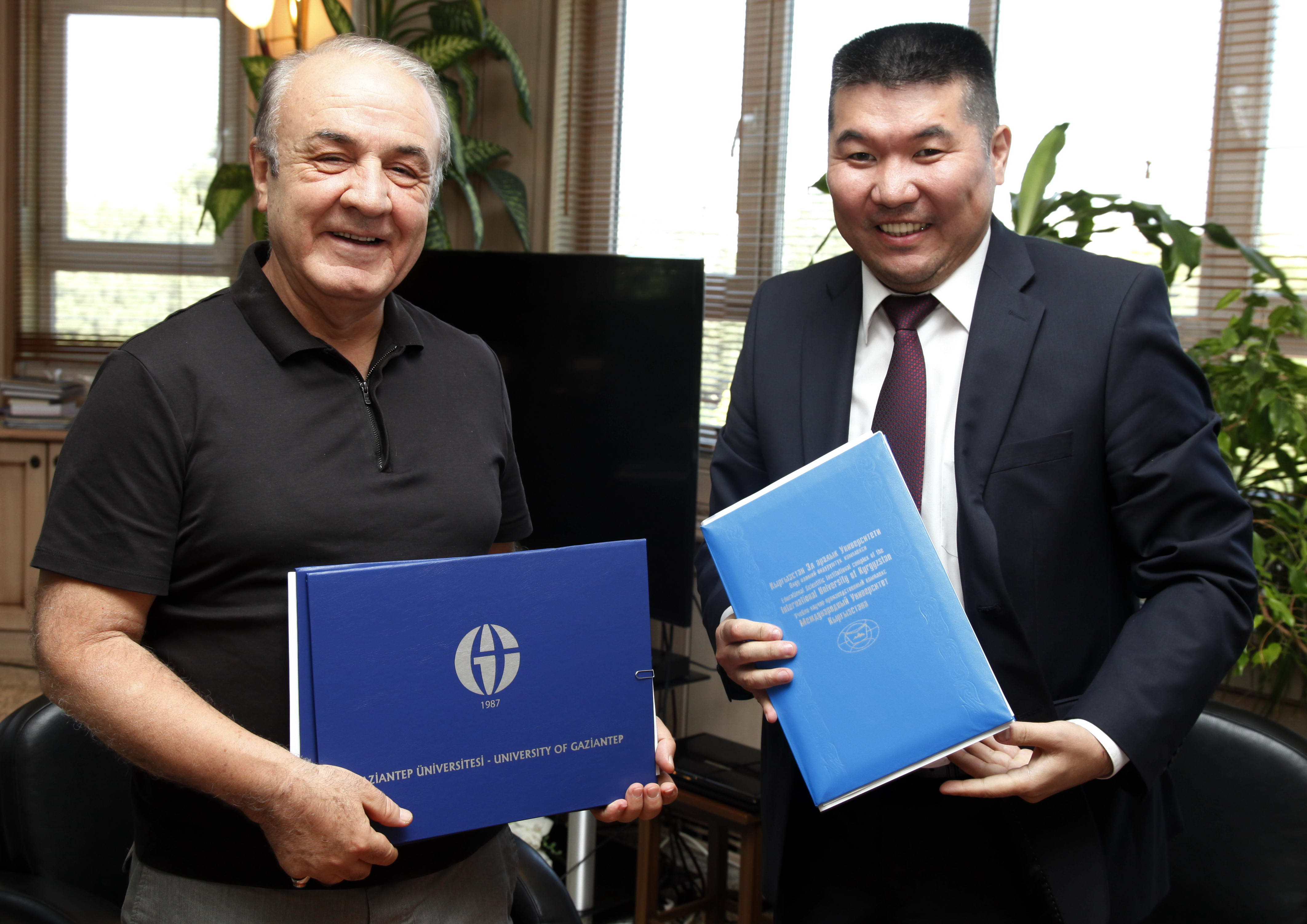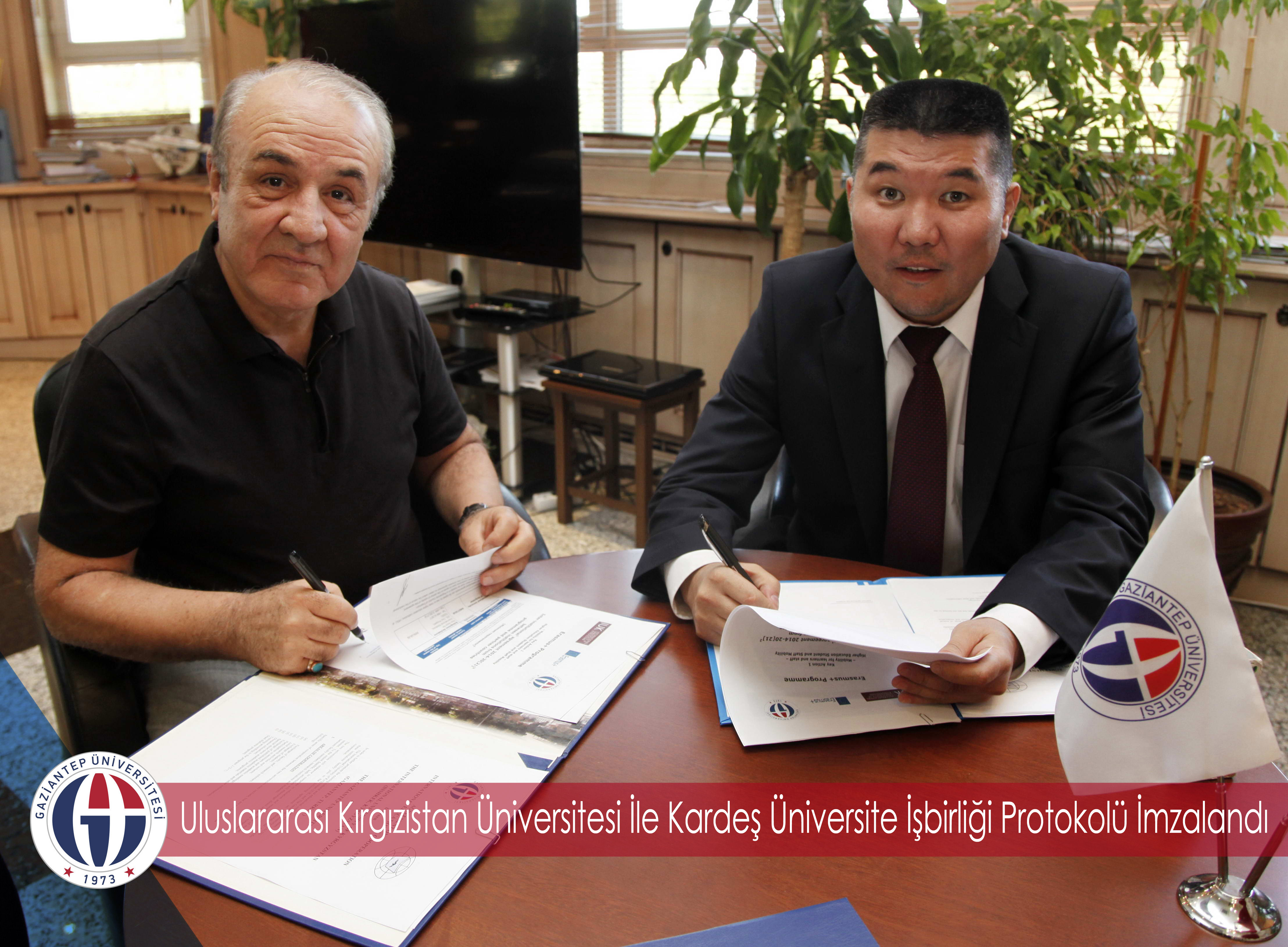 Gaziantep Üniversitesi Rektörü Prof. Dr. M. Yavuz Coşkun ve Uluslararası Kırgızistan Üniversitesi Rektör Yardımcısı Baatyrbek Akylbekov arasında imzalan protokolle; eğitim, proje ve yatırımlar konusunda iki ülke öğrencilerine kültürel, dil zenginliği ve eğitim sonrası yaşamlarında olumlu fırsatlar kazandırmak amacıyla iş birliği antlaşması, Erasmus-plus ve Mevlana Değişim Programı antlaşmaları imzalandı.