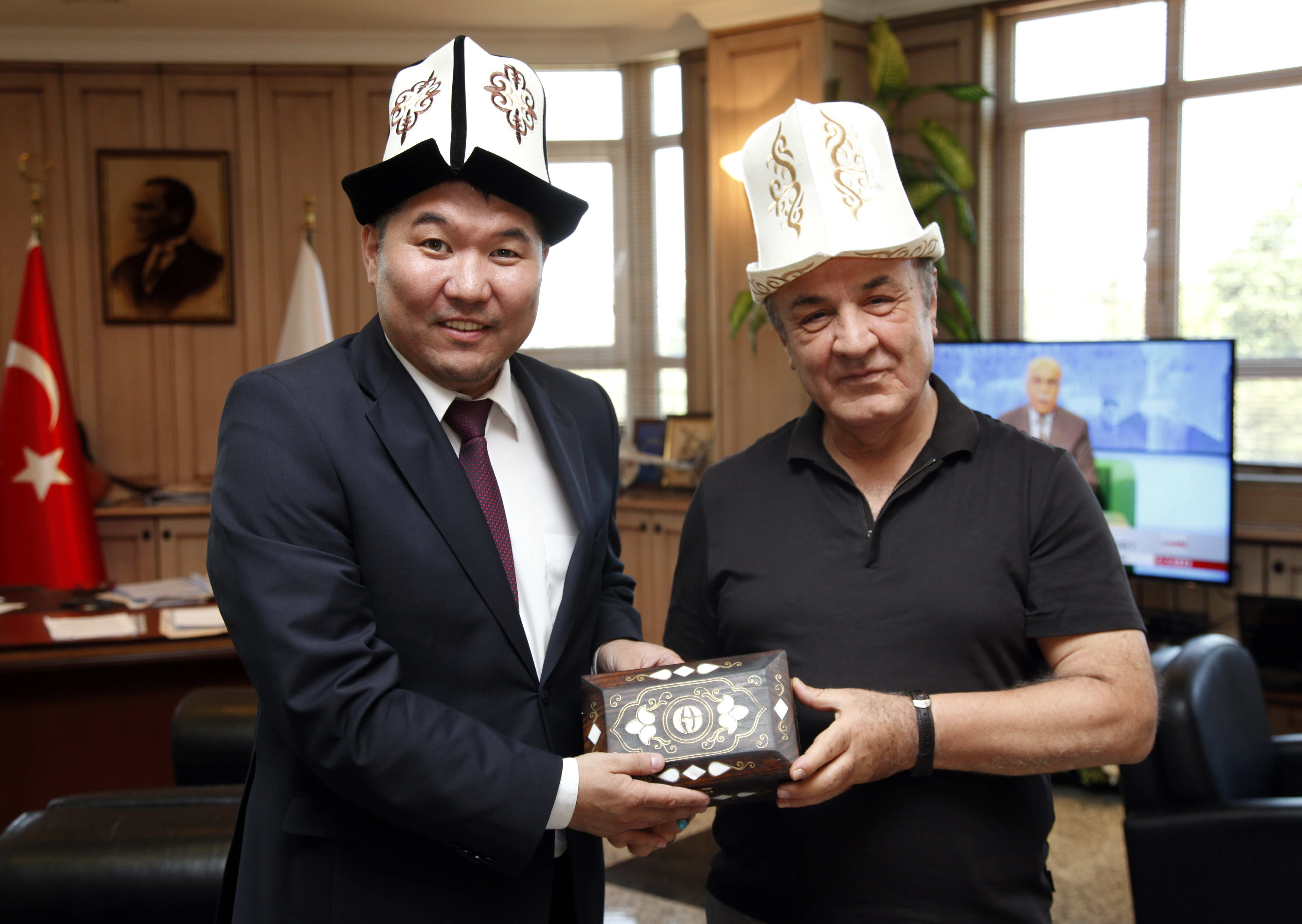 Rektör Yardımcısı Prof. Dr. Cahit Bağcı’nın da katıldığı protokol töreni sonrasında GAÜN Rektörü Prof. Dr. Yavuz Coşkun, Uluslararası Kırgızistan Üniversitesi Rektör Danışmanı ve Yardımcısı Baatyrbek Akylbekov’a GAÜN işlemeli sedef kakma sandık, Akylbekov ise Prof. Dr. Coşkun’a yöresel şapka hediye etti.