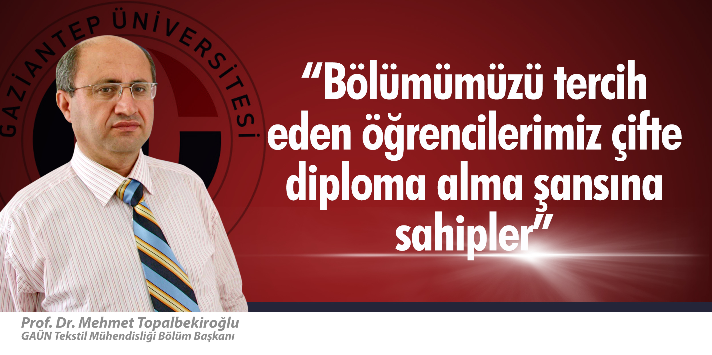 Türkiye’nin İngilizce eğitim yapan iki mühendisliğinden birisi olan GAÜN Tekstil Mühendisliği, yeni mühendis adaylarını bekliyor GAÜN Tekstil Mühendisliği’nde çifte diploma şansı Türkiye’nin İngilizce eğitim veren iki tekstil mühendisliği bölümünden birisi olan GAÜN Tekstil Mühendisliği Bölümü, gerek kaliteli eğitimi, gerekse iş imkânlarıyla bu tercih döneminin gözde bölümlerinden olacak. Tekstil Mühendisliği Başkanı Prof. Dr. Mehmet Topalbekiroğlu, “Sanayiciler bizden mühendis istiyor. Gönderecek mühendis…