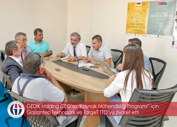 Gedik Holding CEO’su Dr. Mustafa Koçak, Gaziantep Üniversitesi (GAÜN) Gaziantep Teknopark ve TargeT Teknoloji Transfer Ofisi’ni (TTO) ziyaret etti. Ziyaret kapsamında gerçekleşen işbirliği ve istişare toplantılarına Gedik Holding CEO’su Dr. Mustafa Koçak’ın yanı sıra, Gedik Holding Yönetim Kurulu Başkan Yrd. Nurettin Beşinci, GAÜN Mühendislik Fakültesi Dekanı Prof. Dr. Mustafa Bayram, TargeT TTO Genel Müdürü Ekrem Tekin, Gaziantep Teknopark Uzmanı Onur Akar, TargeT TTO ARGE ve Yenilik Uzmanı Başar Kılıçparlar ile TargeT Akademi Eğitim Koordinatörü Duygu Tiryaki katıldı.