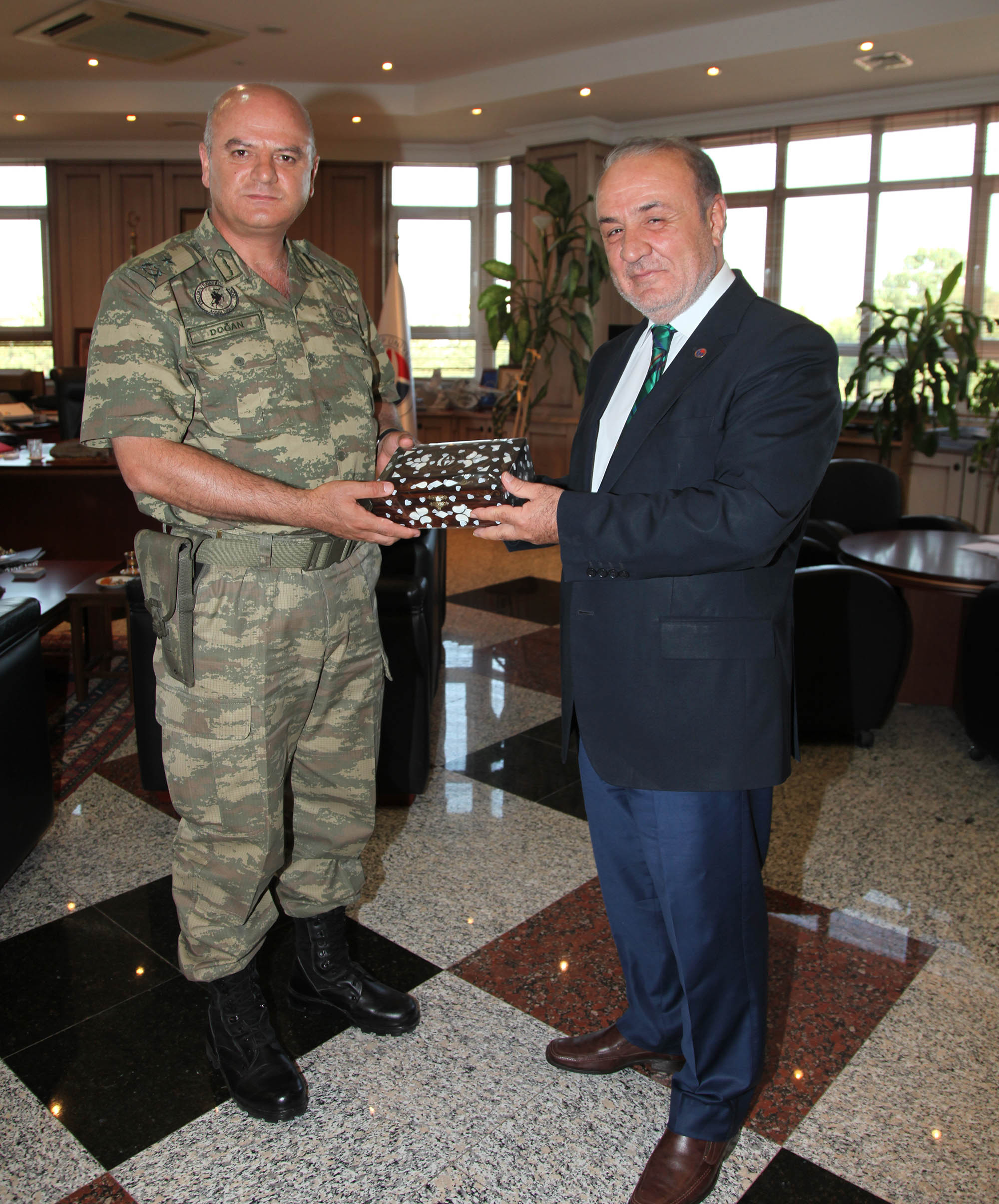 Gaziantep 5. Zırhlı Tugay Komutanlığı görevini yürütürken, Lüleburgaz 65. Mekanize Piyade Tugay Komutanlığı’na atanan Tuğgeneral Cemalettin Doğan, Gaziantep Üniversitesi Rektörü Prof. Dr. Yavuz Coşkun’a veda ziyaretinde bulundu.