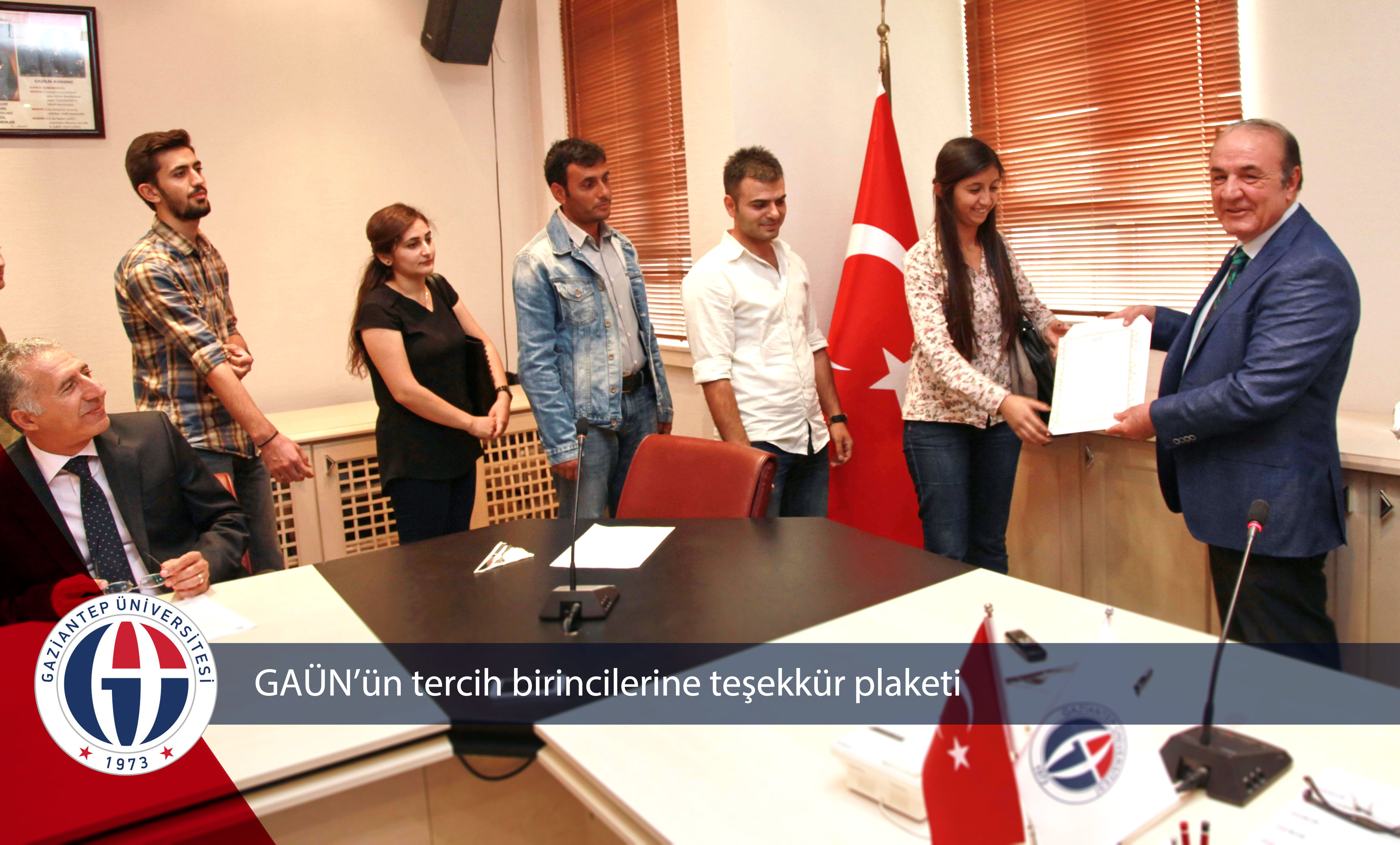 Gaziantep Üniversitesi’nin 15 fakültesine, bu eğitim yılında en yüksek puanlarla birinci sırada kayıtlarını yaptıran öğrencilere, YÖK Başkanı Prof. Dr. Yekta Saraç adına, GAÜN Rektörü Prof. Dr. Yavuz Coşkun tarafından birer teşekkür plaketi ve hediye takdim edildi.