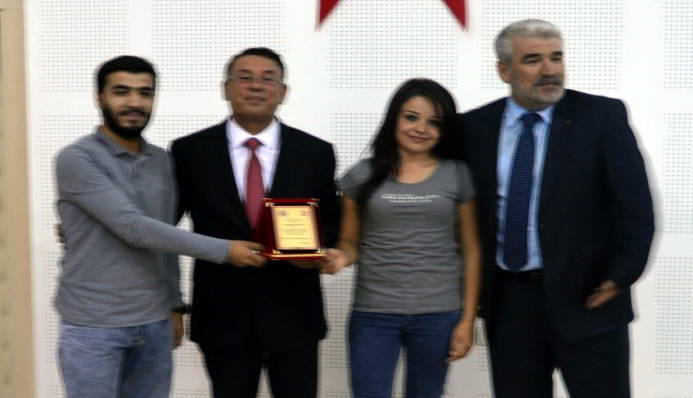 Konferans sonunda, Dekan Prof. Dr. Mehmet Özaslan tarafından İbrahim Kaçıran’a günün anısına hediye paketi ile plaket sunuldu.