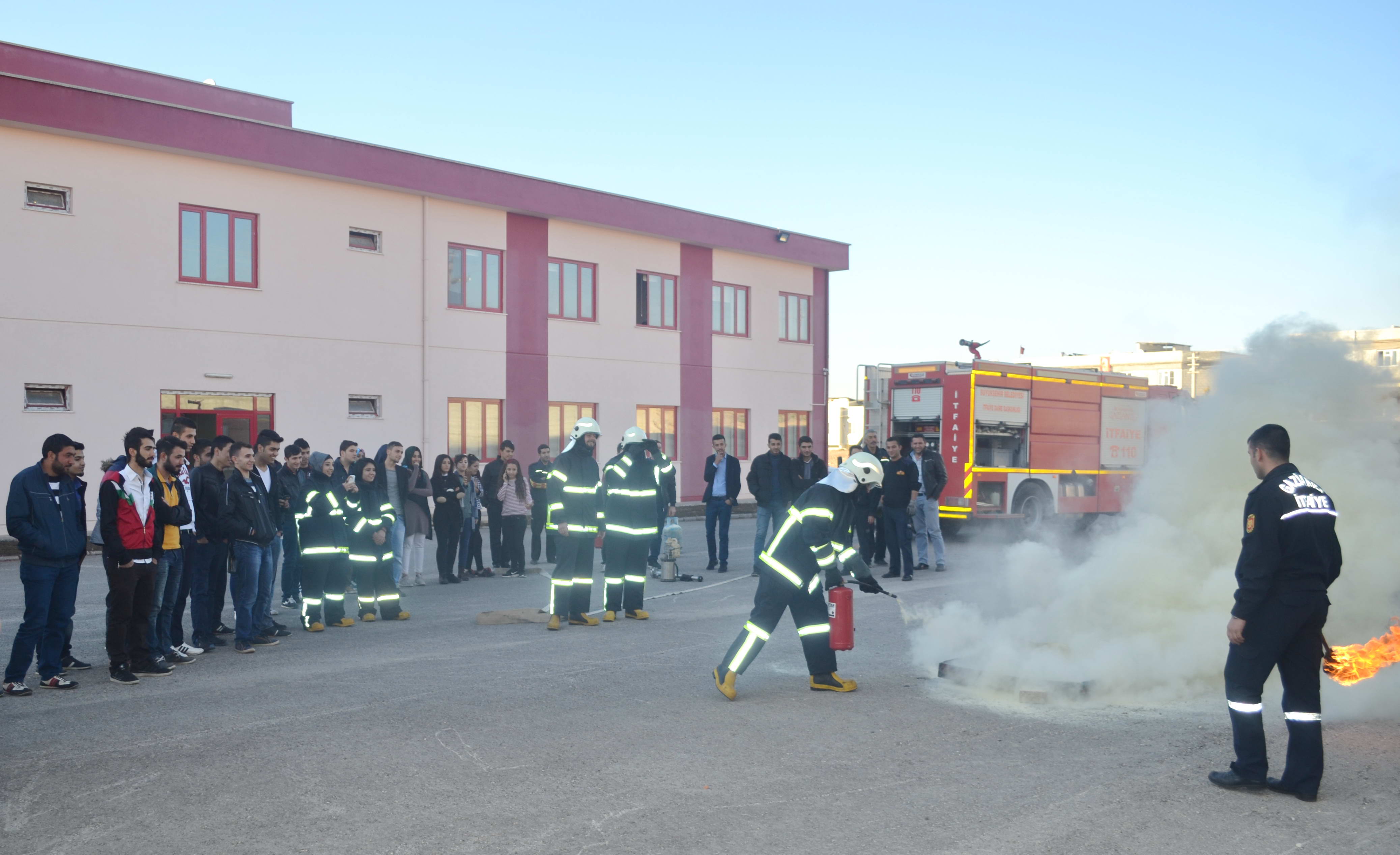 Gaziantep Üniversitesi (GAÜN) Oğuzeli Meslek Yüksekokulu ve Gaziantep Büyükşehir Belediyesi İtfaiye Daire Başkanlığı işbirliği çerçevesinde, Öğr. Gör. Celal Bal’ın koordinatörlüğünde Özel Güvenlik ve Koruma Programı öğrencilerine “Yangın Güvenliği” dersi kapsamında Sivil Savunma ve İtfaiye Programı öğrencileri tarafından uygulamalı olarak yangına müdahale eğitimi verildi. Tatbikat öncesi Ögr. Gör. Celal Bal öğrencilere yaptığı açıklamada, “Bu bölümden mezun olduktan sonra her biriniz çeşitli…