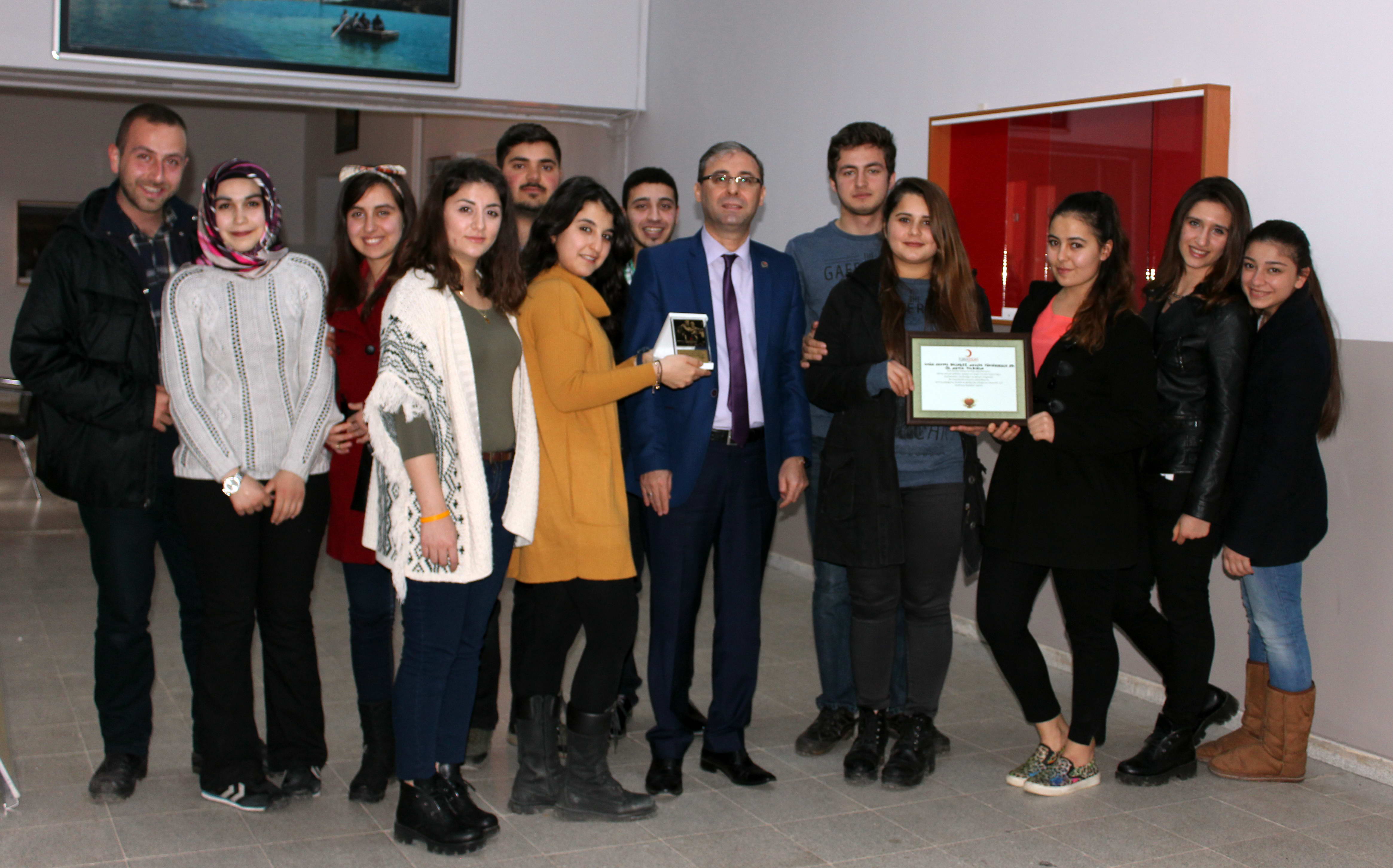 322 ünite kan bağışı ile GAÜN’de en yüksek kan bağışında bulunan birim olarak ödüle layık görülen GAÜN Sosyal Bilimler Meslek Yüksekokulu, öğrencileri ile gurur duyuyor. Kan bağış plaketi ve teşekkür belgesi, Gaziantep Kan Bağış Merkez Müdürü Dr. Mehmet Akıncı tarafından Sosyal Bilimler MYO Müdürü Yrd. Doç. Dr. Metin Yıldırım’ a sunuldu. Törende konuşan Gaziantep Kan Bağış Merkezi Müdürü Dr. Mehmet Akıncı, “Türk Kızılay’ı, ihtiyaç anında dayanışmanın ızdırap anında şefkatin, savaşın en kızgın anında insancıllığın, merhametin, tarafsızlığın ve barışın simgesidir. Bu manada kurumumuz çalışmalarına vermiş olduğunuz destek ve göstermiş olduğunuz duyarlılık için tarafınıza teşekkür ederim ” dedi.