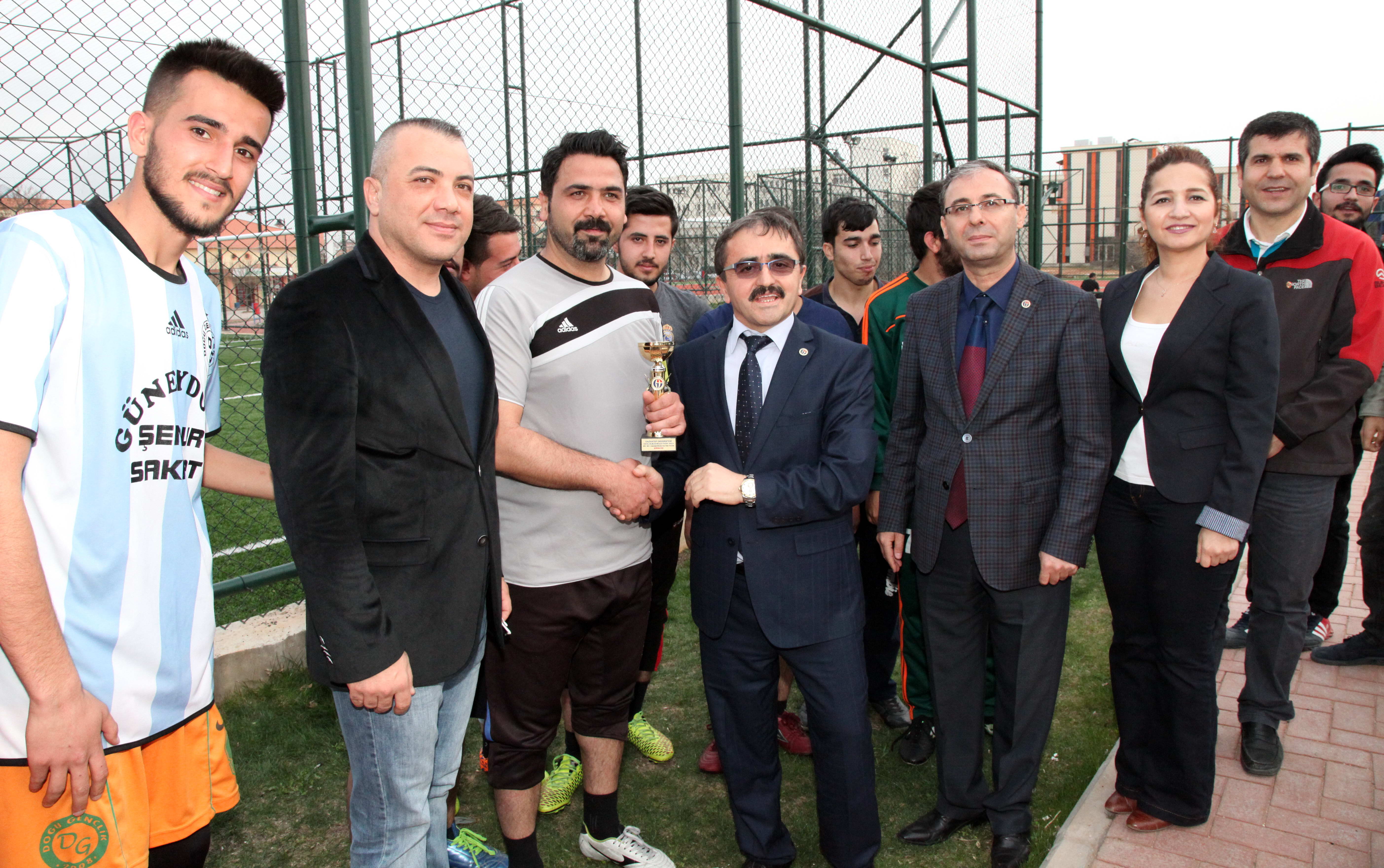 Çok sayıda öğrencinin ve öğretim elemanlarının izlediği karşılaşmayı eski Ulusal Hakem ve GAÜN Personeli Murat Tekbaş yönetti. Final sonrası şampiyon takıma kupasını GAÜN Rektör Vekili Prof. Dr. Cahit Bağcı takdim etti. Final oynayan tüm öğrencilere madalyaları ve spor ayakkabılarını Yüksekokul yönetimi ve öğretim elemanları ile veren Prof. Dr. Cahit Bağcı, öğrencileri tebrik ederek, “Bu görkemli spor kompleksini Üniversitemize kazandıran Rektörümüz Prof. Dr. M. Yavuz Coşkun’a çok teşekkür ediyoruz. Tüm takımları tebrik ediyorum. Turnuvayı tertip eden Sosyal Bilimler MYO yönetimi, personeli ve öğrencilerini kutluyorum. Maç boyunca takımlarını destekleyen seyircilerimizi de alkışlıyorum” dedi. Maç sonunda oyuncu ve öğrenciler, hocaları tarafından ikram edilen baklavaları yedi.