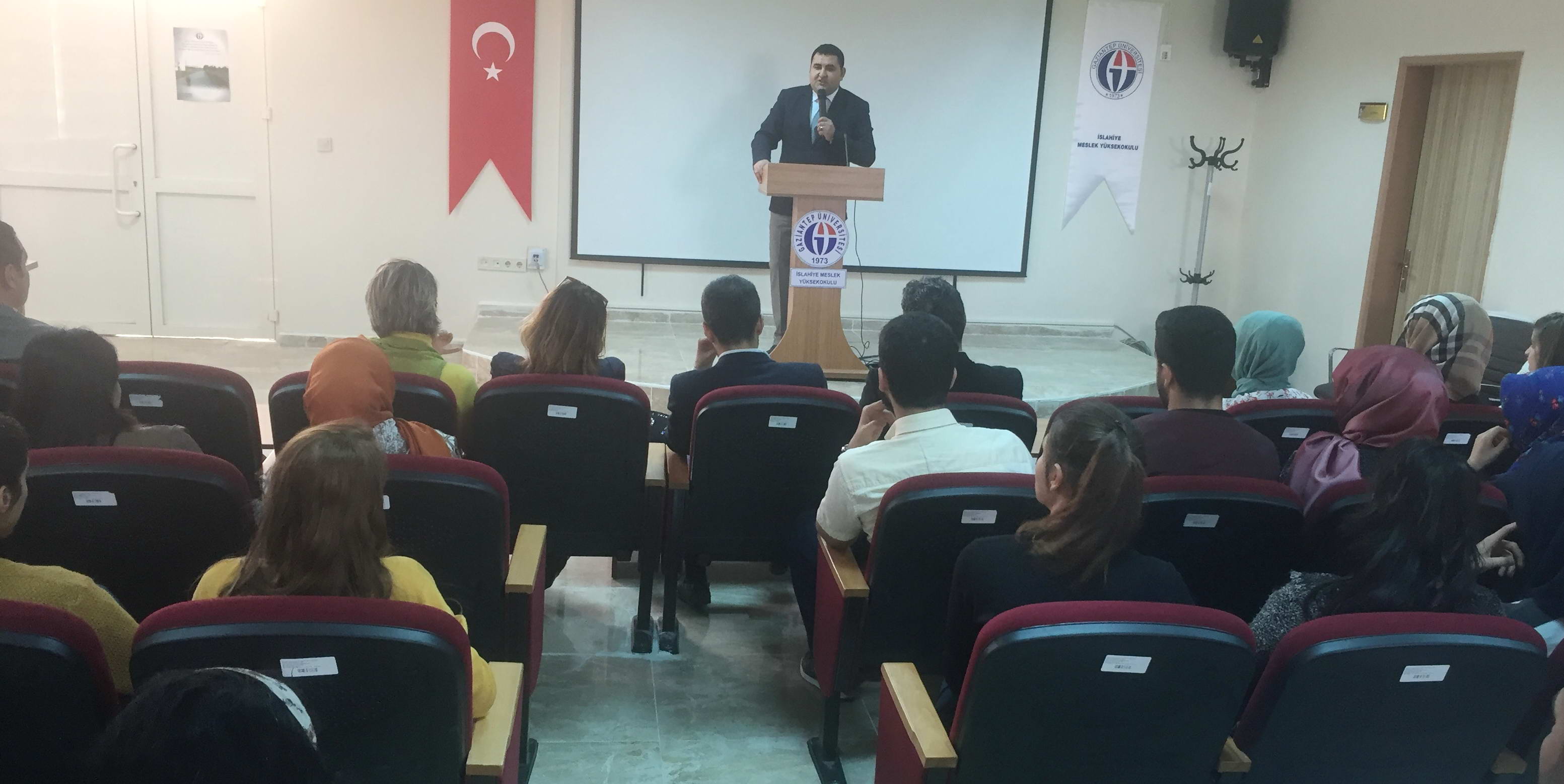 Gaziantep Üniversitesi İslahiye Meslek Yüksekokulu 2015-2016 Akademik yılı etkinlikleri kapsamında Ar-Gem Eğitim Hizmetleri Eğitim Uzmanı H. İbrahim Özdemir tarafından personel ve öğrencilere yönelik “Yabancı Dilin Önemi” konulu seminer düzenlendi. Özdemir, GAÜN İslahiye Meslek Yüksekokulu Konferans Salonu’nda verdiği seminerde; “Artık hayatımızda uyguladığımız her türlü aktivitenin globalleştiği bir noktadayız. Gerek akademik gerekse iş hayatımızda yükselen bir değer olmak istiyorsak iletişim yönümüzün güçlü…